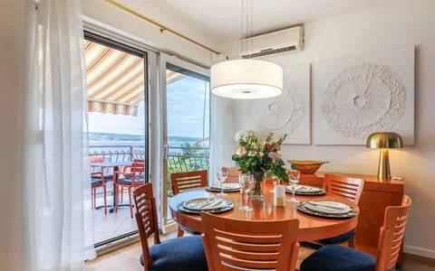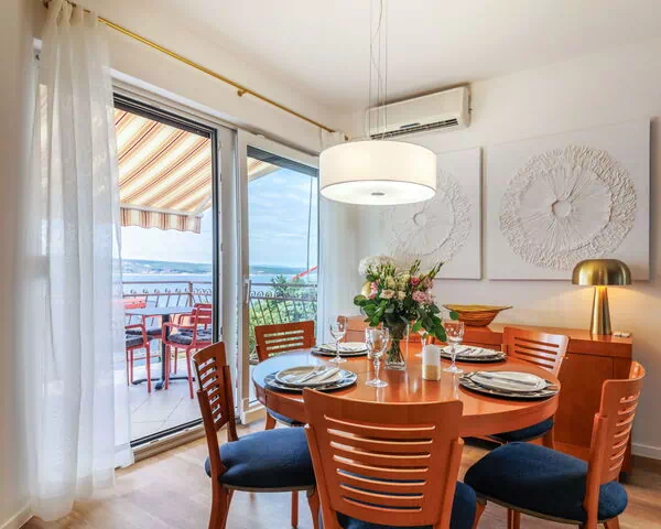 Selce: Casa con varias viviendas "Sunset Vista". A 900 m del centro de Selce, lugar soleado, a 200 m del mar, a 200 m de la playa. Comunitario: terreno 140 m2. En el inmueble: acceso a internet. Aparcamiento junto a la casa en el mismo terreno. Tienda 1.2 km, restaurante 650 m, parada autobús 1.3 km.