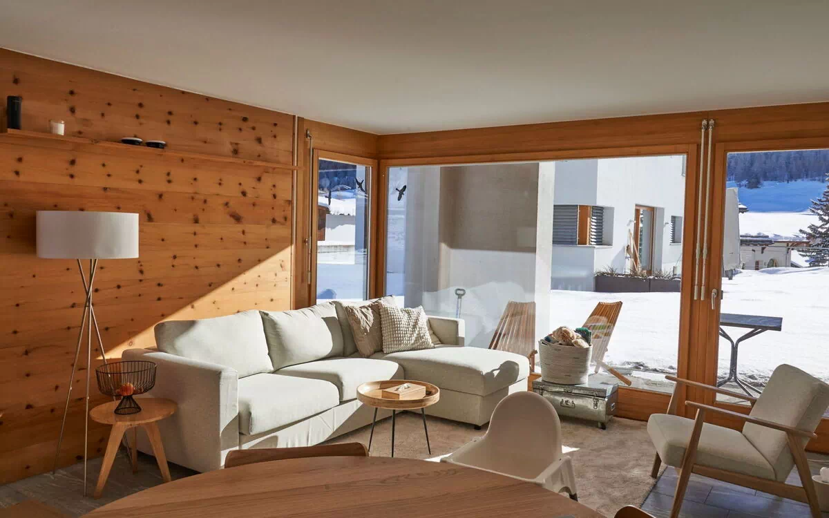 Welcome to our sunny and quiet 2.5-room flat, which is located in the heart of the Upper Engadine and opens the gateway to the National Park. Built in 2005, our flat underwent a partial renovation in 2024 and was completely refurbished and refurnished. The fresh and well-kept interior creates an ideal accommodation for up to two adults and 1-2 children, with a total of three sleeping possibilities, which serves as the basis for unforgettable holiday experiences.The interior includes a spacious living room with an open-plan, fully equipped kitchen, ideal for a family of four. The sofa doubles as a sofa bed. A 43" TV and Netflix streaming service are available for your entertainment, complemented by a small active speaker for musical accompaniment. The bedroom has a double bed, an extendable children's/teenager's bed and plenty of storage space. Our bathroom, functionally furnished with standard cleanliness, and a work area with a height-adjustable table and comprehensive technical equipment complete the interior design of our cosy flat.Workation: For guests who work, there is a fully equipped workstation with high-speed internet at 100 MBits/s, height-adjustable desk with 27" screen and 4K resolution, keyboard, mouse, camera and headset.The outdoor area impresses with its idyllic view of the surrounding mountain landscape from the living room, which invites you to linger. Despite the proximity to the Rhaetian Railway and the main road Via Maistra, which is less busy thanks to the new bypass, you can enjoy peace and quiet. An underground car park is available for your car, with direct lift access to the flat. A storage room for skis, snowboards or bicycles provides additional comfort during your stay.The surroundings of the Upper Engadine, located directly on the Inn, impress with their original charm and the wide range of activities on offer. S-chanf, a village with strong Romanesque roots, offers access to breathtaking hiking trails in the Swiss National Park, a variety of sports activities in the Engadine lakes and first-class cultural offerings. In winter, 350 kilometres of first-class ski slopes, groomed cross-country ski trails and unique panoramic hiking trails attract winter lovers from all over the world.Our flat in the Chesa Pradels is more than just a place to stay; it is your home on holiday. With our focus on comfort, the provision of consumables and our efforts to provide you with a carefree stay, we offer the perfect setting for unforgettable memories. Experience the fascination of the Upper Engadine and enjoy the privacy and comfort of our lovingly furnished flat. Welcome to the Engadin - your adventure begins here.