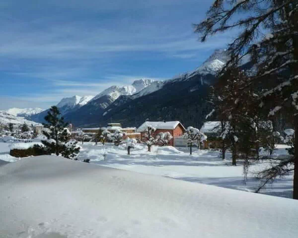 Let your soul dangle. Enjoy the marvellous peace and quiet and the beautiful surroundings.*** Free mountain railway and public transport in summer, free public transport in winter ***Cosy 2-room flat, approx. 50 m2 living space, comfortably furnished, in a very quiet location. Indoor swimming pool with panoramic view of the mountains, 20m pool and non-swimmer area in the house, this can be used free of charge. There is also a beautiful sauna, which can be used free of charge 2 days a week during the winter season. The sauna can also be booked exclusively for a fee. A games room is also available. Private car park belonging to the flat, car park for rent (if spaces are still available). Large meadows with trees in front of the house, (ski) bus stop in front of the house. The ski bus and local public transport in the area are free of charge, outside the winter season the mountain railway is also free of charge. Mountain railways, railway station, post office, shops and the village centre are just a few minutes' walk away. **** High Speed Internet/WLAN free of charge ***-Living room: dining table with 4 chairs, sofa bed 2 x 86x200, coffee table, cable + internet SMART HD-TV, radio/CD/Bluetooth. -Bedroom: Double bed 2 x 90x200 and fold-out children's sofa bed as an emergency bed, large pull-out table 170 cm with 3 chairs, perfect for working, home office or for the children.-Kitchen: Fully equipped with dishwasher, fridge with freezer compartment, electric hob, oven, microwave, Nespresso coffee machine (original) and filter coffee machine 1 x 4.Bathroom: bathtub with integrated height-adjustable shower, bathroom cabinet, washbasin and WC.-Sunny south-facing balcony with table, deckchairs and beautiful view of the mountains.*** The indoor pool is closed in the low season in spring and late autumn ****** Tourist tax is only payable for persons over 12 years ***Other living room equipment (living room1): Hiking maps, games, information material, booksOther bedroom furnishings (bedroom1): Sitting area with 3 chairs, wardrobes.Other kitchen equipment (kitchen1): Fondue set, raclette, various spices. The kitchen is fully equipped, you should find all the essentials there.Sports facilities in the area: fishing, mountaineering, ice skating, golf course, canoeing, mountain biking, paragliding, cycling tours, rafting, riding centre / riding facilities, tobogganing, skiing (alpine), skiing (cross-country), tennis