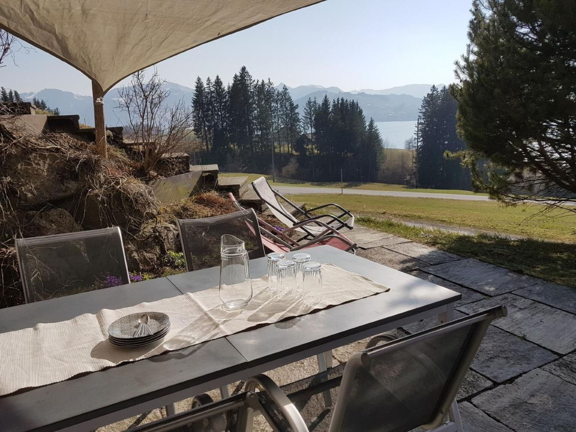 Enjoy a holiday at the Tanngarten organic farm on the beautiful Lake Sihl. Ideal for nature and hiking enthusiasts, bikers and in winter for skiers and cross-country skiing fans. Unique sunsets crown the end of the day.A wide range of restaurants and cultural events in Einsiedeln and the surrounding area will enrich your holiday.City lovers can visit Zurich, Lucerne and Zug, or the Schwyz valley basin.FlatOur holiday flat is ideal for 2 people. The sofa is extendable and offers sleeping space for 2 more people.As the bedroom and living room are not separated, there is no privacy for 4 people.There are no special facilities for children.Our farmWe have suckler cows, laying hens, horses, alpacas, cats and rabbits. ActivitiesSmaller hikes can be made directly from the farm, to Oberegg/ Hochetzel, Körnlisegg, Stöcklichrüz or to the Gueteregg alpine farm.Only 2 minutes walk to the Sihlsee to the Egger-Badi Access to the cross-country ski trail in 5 minutes by car, where there are kilometres of trails through the Schwantenau moorland to EinsiedelnIf we have aroused your interest, we would like to extend a warm welcome.Other sports and leisure activities: Sattel-Hochstuckli: Hike over the suspension bridge or ride the toboggan run and tubing run, scooter trekking.Tour of the monastery and the stablesWellness in the Aegeribad or in Morschach Swiss holiday ParkFunicular railway from Schwyz to StoosHoch-Yberig zip wire (Sternensauser)Carnival time: bread throwing tradition of EinsiedelnEvents in the monastery village of Einsiedeln:September the Iron Bike Race with advance booking August music festival in EinsiedelnChristmas market in EinsiedelnCultural summer, with various concert series from June to AugustExcursion possibilities: Smaller hikes possible on foot from the farm, to Alp Gueteregg, to the Etzel or Hochetzel, to KörnliseggFrom the Sattelegg hike chli Aubrig Moor area Schwantenau EinsiedelnMountain area: Brunni/Alpthal Mountain area: IbergereggMountain area: HochstuckliMountains: Stoos or Rigi Cities such as Zurich. Lucerne. Zug, or visit the Schwyz valley basin or Brunnen/MorschachOther living room equipment (living room1): Living room and bedroom are in one room. The sofa is a sofa bed and can be used as a sleeping place for two more persons if necessary.Other bedroom furnishings (bedroom 1): Bedroom and living room are in one room. The double bed is only accessible from the foot end. The bed is not suitable for people with physical disabilities.Sports facilities in the area: Mountaineering, Ice skating, Golf course, Climbing, Mountain biking, Cycling, Tobogganing, Alpine skiing, Cross-country skiingLocal description: Einsiedeln is famous for the Einsiedeln Monastery, the most important baroque building, the Black Madonna. Einsiedeln is not only a place of pilgrimage, but also a winter sports resort. Lake Sihlsee, a reservoir on the River Sihl, is ideal for swimming in summer. The neighbourhoods around Lake Sihl form further residential areas that belong to Einsiedeln, with Willerzell being one of the sunniest districts. Egg, Eutahl and Gross are also part of the neighbourhoods, which are still home to many farms that contribute significantly to the beautiful landscape. Culture and traditions are actively cultivated and lived, so that this autumn 20,000 spectators were present at the planned alpine descent through Einsiedeln. 446600
