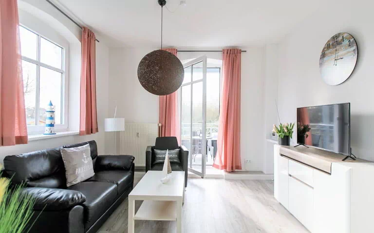 Permitido máximo 2 mascotas / perros. HausOstseewelle is located 150 metres from the beach. The holiday flat 6 is on the ground floor with balcony. The flat has a bedroom (double bed 180x200), a children's room with two single beds (90x200) and a living-dining room. The kitchen is integrated into the living room and is equipped with a coffee machine, toaster, egg cooker, kitchen utensils, microwave, crockery, pots and pans, dishwasher and a four-burner ceramic hob. The kitchen does not have an oven. The equipment includes a radio and an LCD DVBT TV. The house has one parking space per holiday flat.The washing machine and tumble dryer are coin-operated and can be used by everyone in the laundry room.HausOstseewelle is located directly at the Kurpark, the dog beach and the promenade are both about 150 metres away from HausOstseewelle. A maximum of two dogs are allowed, otherwise no other pets are allowed. A Greek, Italian and a Chinese restaurant are in the immediate vicinity.The approx. 2 km long promenade offers various restaurants, shops, as well as a seawater pool with wellness, sauna and fitness studio, a large playground and a children's harbour (similar to KiGa) also interesting for older children. The almost 2 km long promenade has everything you need for a stroll. The beach in Dahme is 6.5 kilometres long and you can walk for hours on the beach to the north.There are signposted routes for joggers and walkers in Dahme.The linen package includes the following: 1 linen package for 1 person, consisting of 2 x towels, 1 x bath towel, 1 x pillowcase, 1 x duvet cover and 1 x fitted sheet.Please noteThe spa tax must be booked via the WELCpass. You will receive the contact details for the WELCpass from us.For the contactless key handover, the additional costs must be transferred before the start of the holiday. You will receive the bank details from us after contacting us.Short descriptionOther : Non smoking house.