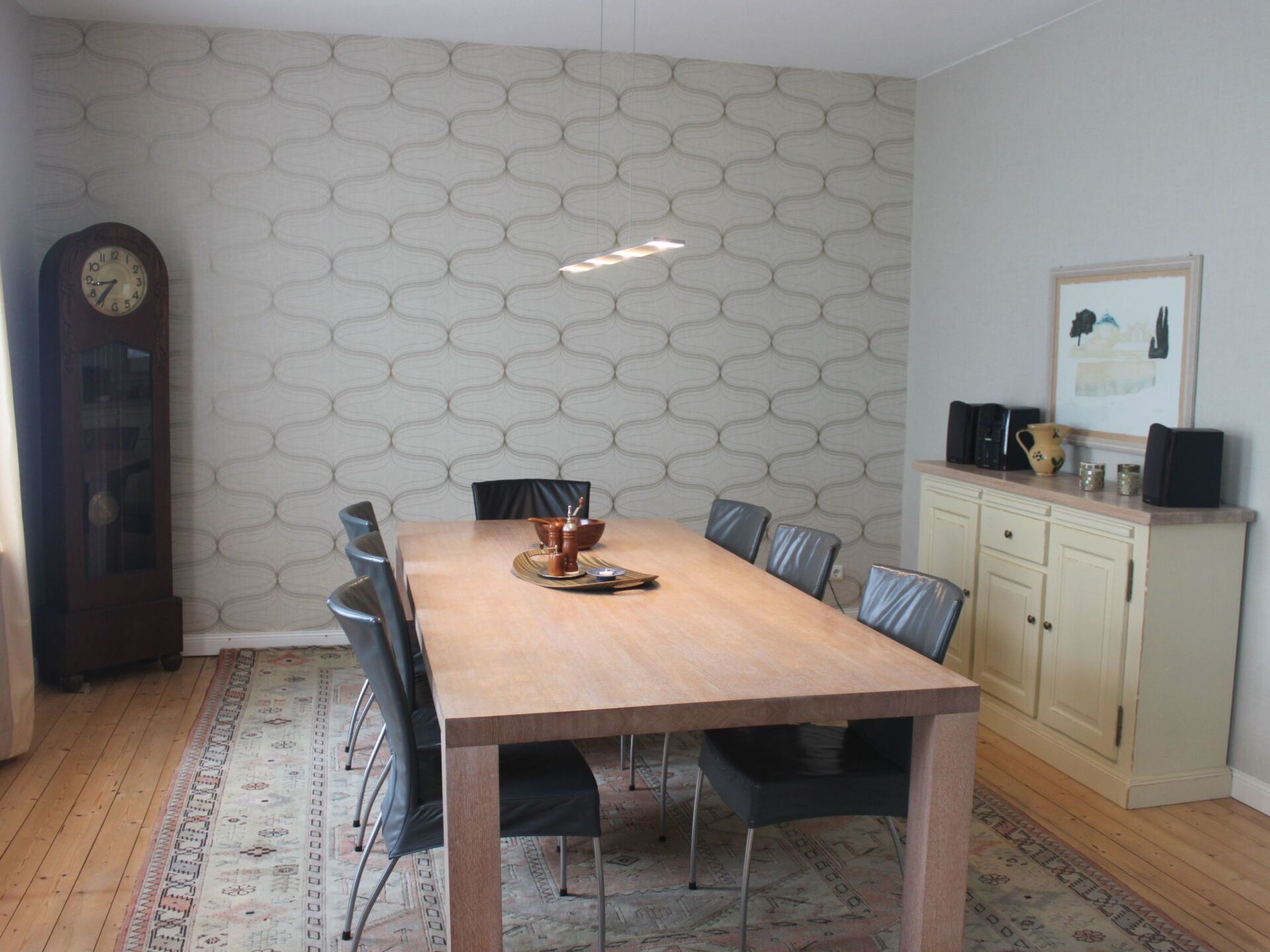 Our sexton's house is located on a quiet side street in the centre of the village. Built in 1910, the building was taken over by the Catholic church in 1952 and from then on served as a home for the sexton couple, who looked after the church, which was also built on the site in 1952. In 2015, the church was deconsecrated and we had the opportunity to acquire the ensemble of buildings. With great attention to detail, we have brought the sexton's house back to life in recent years.A terrace with garden furniture and an outdoor barbecue awaits our guests in front of our house.On the ground floor there is a bedroom with a double bed, a modern bathroom and the "highlight", the well-equipped kitchen with the directly adjoining spacious dining room. A relatively steep staircase leads to the upper floor. Here, a large living room invites you to relax. There is also a bedroom with a single bed on the upper floor and another bedroom with two single beds next door under the sloping roof.The house is located in Butjadingen-Stollhamm, a village in the centre of the Butjadingen peninsula. From here, you can explore the countryside on a network of cycle paths stretching over 200 kilometres. The Butjadingen cycle path network is integrated into the "German Sielroute", the "Weser Cycle Path" and the "North Sea Coast Cycle Path". Cities such as Bremerhaven, Bremen, Wilhelmshaven and Oldenburg are easily accessible from Butjadingen-Stollhamm and are also well worth a visit.With your guest card (spa card) you can explore the surrounding area free of charge on the "Strandläufer", the regional bus service, without using your car. For example, a trip to the Frisian beach in Tossens or to the North Sea lagoon in Burhave is possible every hour.