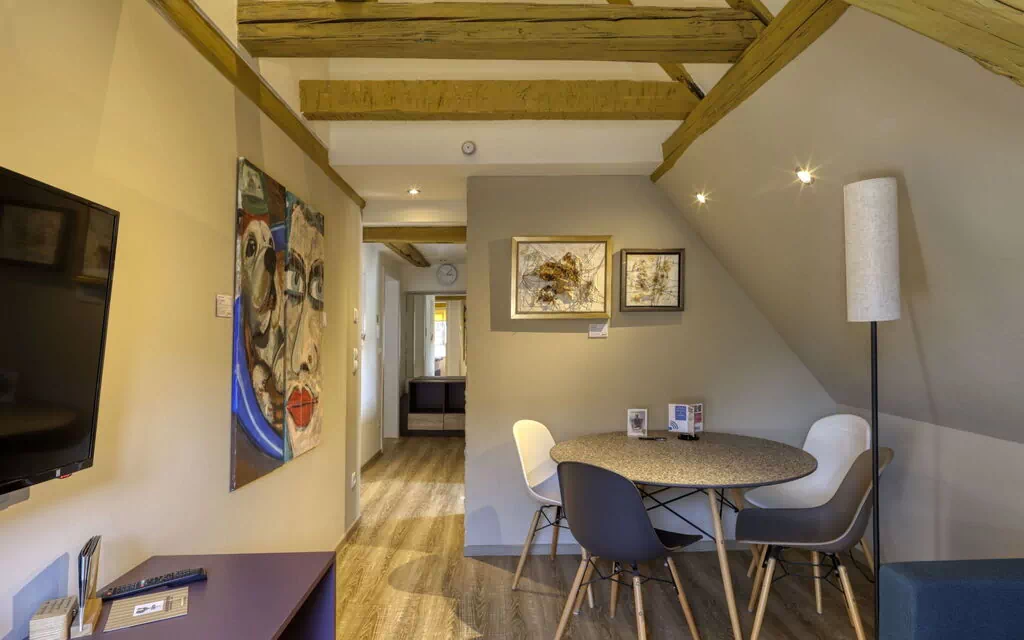 Quiet, cosily furnished 2-room flat on the top floor of the manor house, a luxuriously furnished complete flat awaits you, a shower built into the half-timbering, in the WC you also have your own washing machine, the modern, fully equipped eat-in kitchen with ceramic hob, fridge-freezer combination, oven-stove and dishwasher. In the cosy bedroom, you can lie comfortably on a box-spring double bed under cosy down duvets. In the living room, you can sit and watch TV in a cosy atmosphere or lounge on the comfortable sofa bed. As in the entire house, ceiling heaters are also installed here, which emit heat evenly and pleasantly. Right next to the apartment complex you will find the Mainkai promenade for strolling and sunbathing, as well as a well-run international restaurant with sun terraces, lounge and vaulted cellar. Just 80 metres above, on the market square, there are several restaurants ranging from Chinese and Greek to one of the best Franconian brewery pubs, the Bräustüble. You will also find bakers, butchers and all other shops for your daily needs within walking distance around the market square.Brief descriptionOther : Non-smoking houseShort description 1Number of kitchens : 1Bathroom 1Other bathroom facilities : Washing machineSurroundingsLoan facilities : Car rental, bicycle rentalSports facilities in the area : Fishing, basketball, football pitch, golf course, hunting, canoeing, mountain biking, cycling tours, riding area / riding possibilities, rowing, sailing, sports centre, tennis, water skiingGarden and outdoor facilitiesGarden equipment : Garden furniture available, barbecue, pavilionServicesServices (may be subject to a charge) chargeable) : Cleaning service during your stay, Maid service
