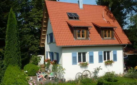 Permitido máximo 2 mascotas / perros. The holiday house was built in 1920. After nearly 100 years, the owners converted and renovated it in 2012. The house and another house are by the Iller reservoir dam near Aitrach/Mooshausen on a site of around 1200m², right by the edge of a forest. The managers live on the other side of the road. There are no other neighbours.The 120m² house provides a central tiled fireplace stove fired with wood for heating the house, as well as additional central heating . The ground floor has a big kitchen with a sitting corner for up to eight people. There is a giant living room with a lounge area and dining space with a hatch through to the kitchen. The solid wood floorboards give the living and dining room an especially cosy atmosphere. The bench by the fireplace stove is cosy in winter. The first floor has a big living room-bedroom with a double bed and single bed, as well as a smaller room with two pull-out beds. There is also a bathroom with underfloor heating, a shower and toilet. There are two further beds and another lounge in the attic. It is a non-smoking house. Children are welcome (highchair, cot on request). The site is fenced and pets are allowed. Since March 2015 the house has an additional pellets central heating to enhance residential comfort. Since January 2017 there are new natural wooden windows in all the rooms. Also in 2018 a wooden floor was installed in the living room.Guests with pets will appreciate the fully fenced garden by the edge of the forest, so despite the most thorough of cleaning, allergy sufferers should be aware that many pets have been accommodated here.There is a roofed outdoor seating area right by the house, where you can grill or simply enjoy the day. There is a little boat for the neighbouring pond and bicycles are available, as well as other leisure equipment in the big garage.The big, mature trees such as birch, linden, red beech and spruce provide shady spots in summer, with a hammock and canopy swing, as well as a wintery atmosphere. The adjacent pond invites you to go on a little boat trip, or skating in winter. The view of the river Iller flowing in front of the reservoir dam is very calming. Leisure activities in the area include fishing (with fishing permit only and in certain sections of the Iller), walks and hikes on the Aitracher Höhenweg, the Wurzacher Ried, the Danube Valley or simply the adjoining forest to the animal park. The slightly hilly surroundings also invite you to go biking. Bicycles are available on request. You can go for a stroll in the towns of Memmingen, Ulm, Kempten, Wangen or visit the Ulm minster, the Buxheim charterhouse or the farm museum in Illerbeuren. You can swim in the surrounding lakes, as well as in indoor, outdoor and thermal pools. In winter you can go skating on the nearby lake or at the rink in Memmingen. There are cross-country skiing trails about 20km away, ski pistes 50km away. Hot air balloon rides, the Skyline Park, scenic flights, golf, BMX riding or carting are all available. You can do shopping in Aitrach about 3km away, either by bike through the forest or by car, with a bakery, beer garden with a small animal zoo, a butcher, an Edeka market, a pharmacy, a doctor, a bank with an ATM (Raiffeisenbank), a petrol station in Tannheim about 5km away, a restaurant a ten-minute walk away. There is further entertainment in Memmingen about 15km away.