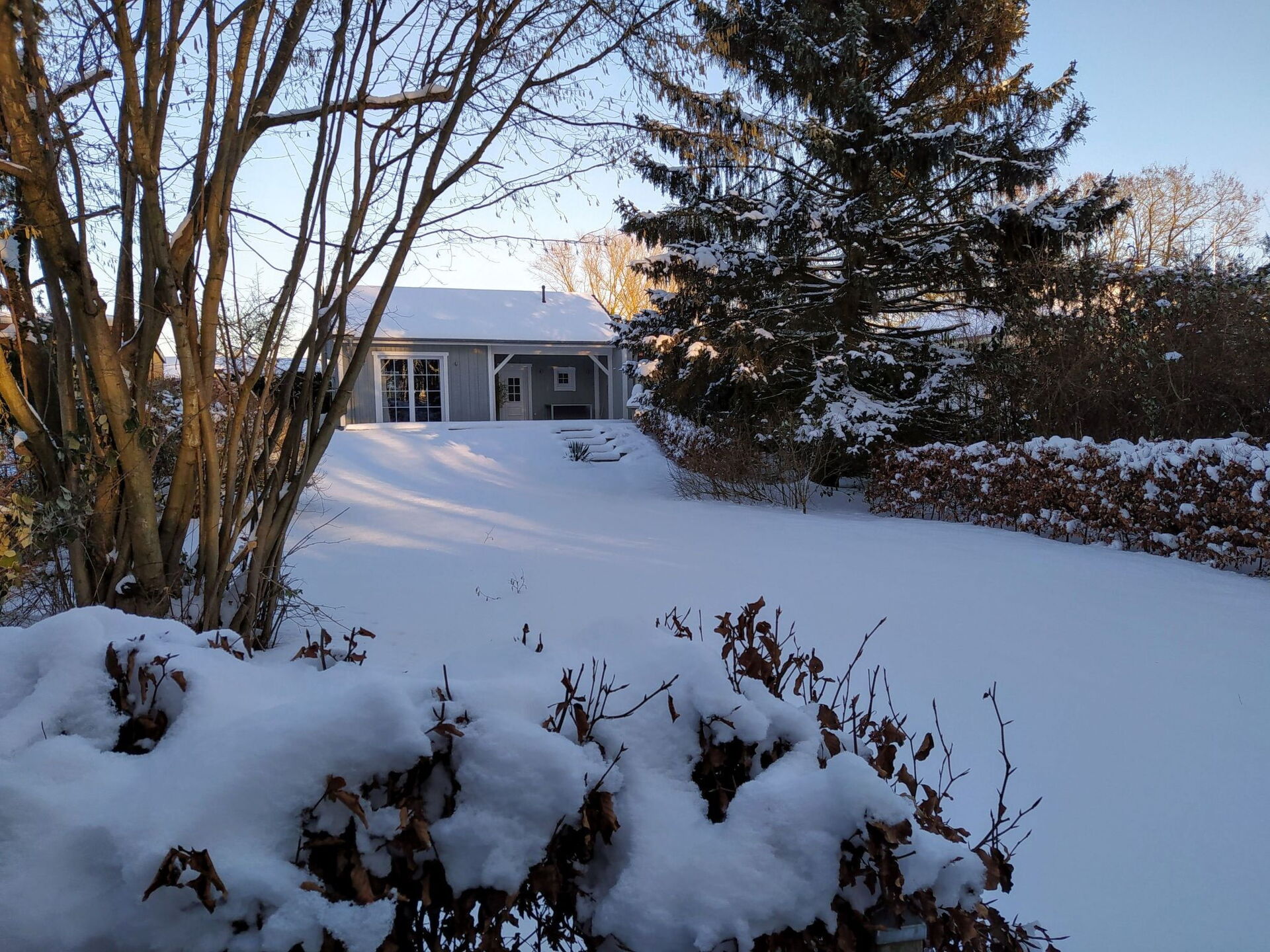 Welcome to the holiday home "Luise am See", an idyllic 50sqm new building with a characteristic wooden facade, which, after renovation in winter 23/24, is now ready to offer up to 2 adults an unforgettable stay directly on Lake Schwerin in Flessenow. Nestled in a marvellous natural landscape, our house guarantees peace and relaxation at any time of the year.Inside the house you will find facilities that leave nothing to be desired: a fully fitted kitchen with ceramic hob, oven, dishwasher and other amenities for self-catering. The walk-in shower, underfloor heating throughout the house and the cosy wood-burning stove in the living room provide additional comfort. Free WLAN (fibre optic, 200 Mbit/s) is available for entertainment and information, as are two televisions, a stereo system and a DVD player.Outside, the sunny south-west-facing terrace with barbecue fireplace provides the perfect setting for relaxing hours outdoors. The 700 square metre, barely visible and enclosed property is surrounded by hedges and invites you to linger in nature with garden furniture. A carport ensures the safety of your vehicle. The direct surroundings by the lake, separated by a 50 metre wide strip of woodland, as well as the nearby bathing area with a large sunbathing lawn, make spending time outdoors particularly appealing.Flessenow itself, a peaceful district of Dobin am See, is about 20 kilometres from Schwerin (World Heritage Residence Ensemble) and offers a breathtaking backdrop for cyclists, hikers and water sports enthusiasts. The direct location on Lake Schwerin, with no through traffic and surrounded by an extensive network of hiking and cycling trails, makes our holiday home the ideal starting point for exploring nature and cultural highlights in the surrounding area - from the Hanseatic city of Wismar to Schwerin Castle and the Baltic seaside resorts.The holiday home "Luise am See" is ready to offer you an exceptional holiday where comfort and nature come together in a unique way. Whether you long for peace and quiet, want to actively explore the surroundings or simply want to unwind in an exclusive ambience - this is the right place for you. Immerse yourself in a world of relaxation and recreation and secure your stay in this dreamlike domicile by the lake.