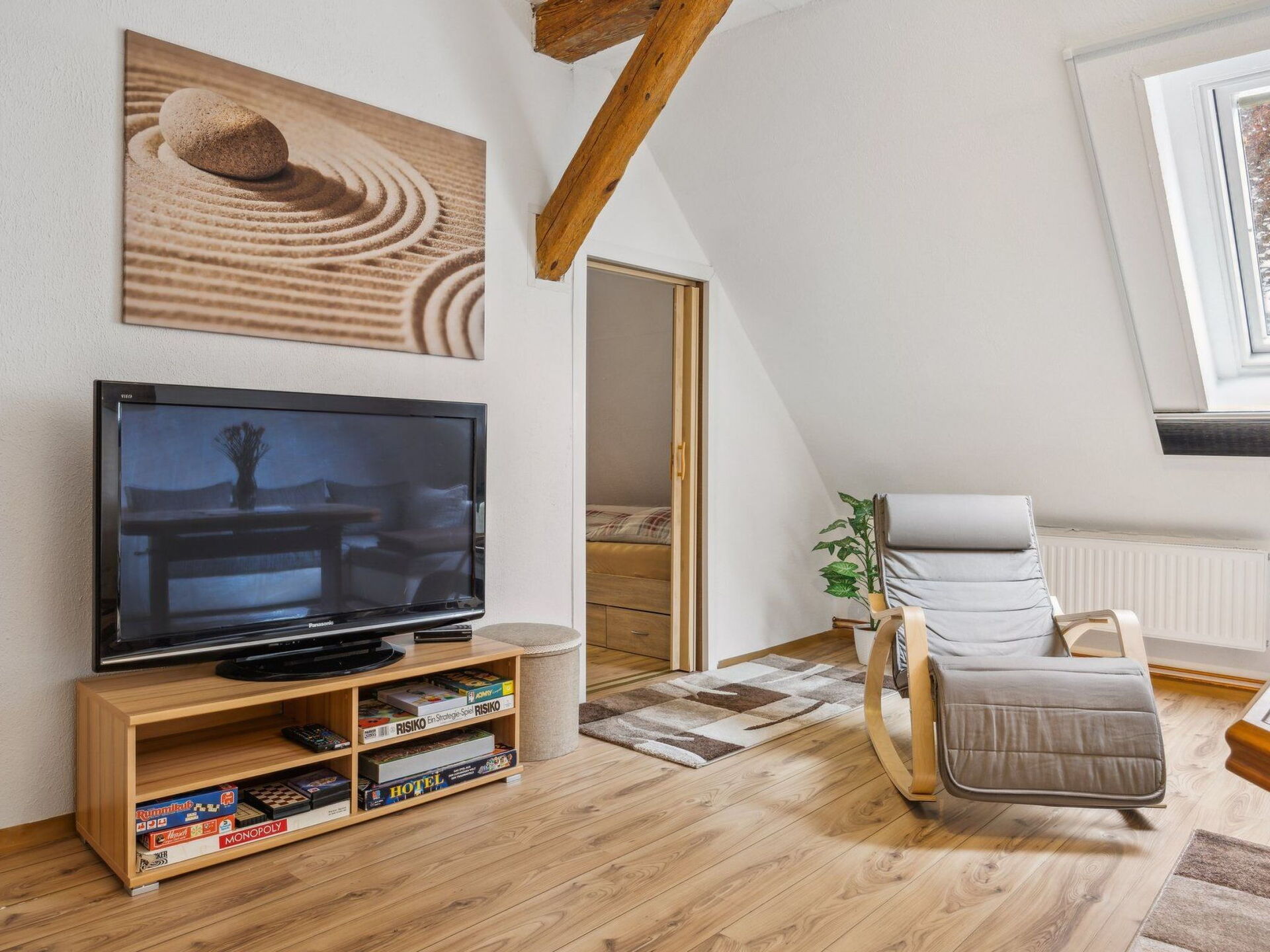 Discover the idyllic ambience of our cosy 3-room holiday flat in an old manor house, located on the first floor for non-smokers. With a generous space of around 90 square metres, this flat is ideal for up to 4 people plus an extra bed option for 2 more people and a small child. Completed in 2019, it has its own entrance and a parking space right outside the front door - a perfect base for a relaxing holiday.The interior leaves nothing to be desired: An inviting living room with upholstered furniture, sleeping function, flat-screen TV, radio and WiFi for relaxing evenings, a fully equipped kitchen with electric hob, ceramic hob, oven, fridge (without freezer compartment), microwave and various other kitchen appliances including a small freezer. For a good night's sleep, there is a bedroom with a double bed and tiled stove and a children's/guest room with two 90x200 cm beds. The bathroom is equipped with a shower and WC, not to mention the cosy warmth of the central heating.Outside you will find an idyllic garden seating area with barbecue facilities and a bicycle stand in front of the property. Enjoy the peace and space of the large property, which gives the manor house a particularly peaceful location. This is the ideal starting point for outdoor activities.The area surrounding the holiday flat offers a mixture of rural tranquillity and proximity to exciting destinations. Kramerhof is located on the outskirts of Stralsund, just 4 kilometres away. The island of Rügen, the Strelasund and the Baltic Sea beach are within easy reach and offer a wide range of leisure activities from water sports to cycling tours. Anglers will find plenty of opportunities for their hobby in the Strelasund, and it is also possible to launch boats via the water sports club in Parow. The region also offers a wide range of sporting and cultural activities.Make this stylishly furnished holiday flat your home away from home. It combines comfort, peace and relaxation with the opportunity to explore the beauty of the Baltic Sea coast and its surroundings. Whether you are looking for relaxation or want to actively experience nature, here you will find the perfect retreat for unforgettable holidays.