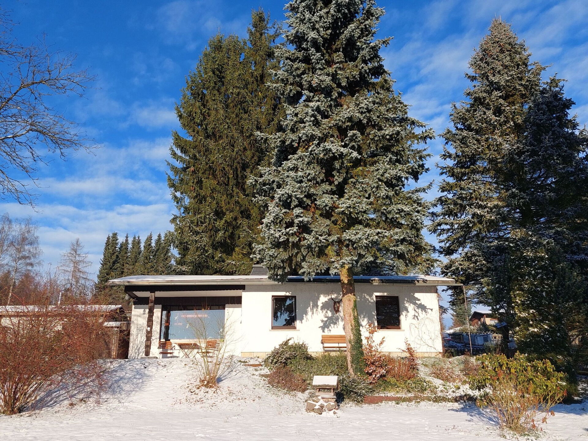 Permitido máximo 2 mascotas / perros. Detached bungalow situated directly next to the forest on 600 square metres of garden with a view of the forest and meadow. The bungalow is very quietly situated in a cul-de-sac and is for exclusive use.With a living space of just under 50 square metres, this accommodation offers enough space for two adults and two dogs. The living area has a corner sofa, coffee table, smart TV and a lovely fireplace for colder days. The modern kitchen is fully equipped with a large induction hob, oven, dishwasher, filter coffee machine, fridge-freezer and much more, leaving nothing to be desired.A cosy dining area awaits you next to the kitchen with a view of the garden. The bedroom has a double bed (160x200) and a spacious wardrobe. The daylight bathroom is equipped with a rain shower, WC, washbasin, underfloor heating and a towel dryer.The 600 square metre plot is fully fenced and for exclusive use. The partially covered terrace with garden furniture invites you to linger.Bad Elster with its new brine bath, as well as many other spa treatments, two theatres, small boutiques and much more is only three kilometres away. The nearest town centre with train station is 900m away. The holiday home is located in a very quiet residential area in a cul-de-sac.