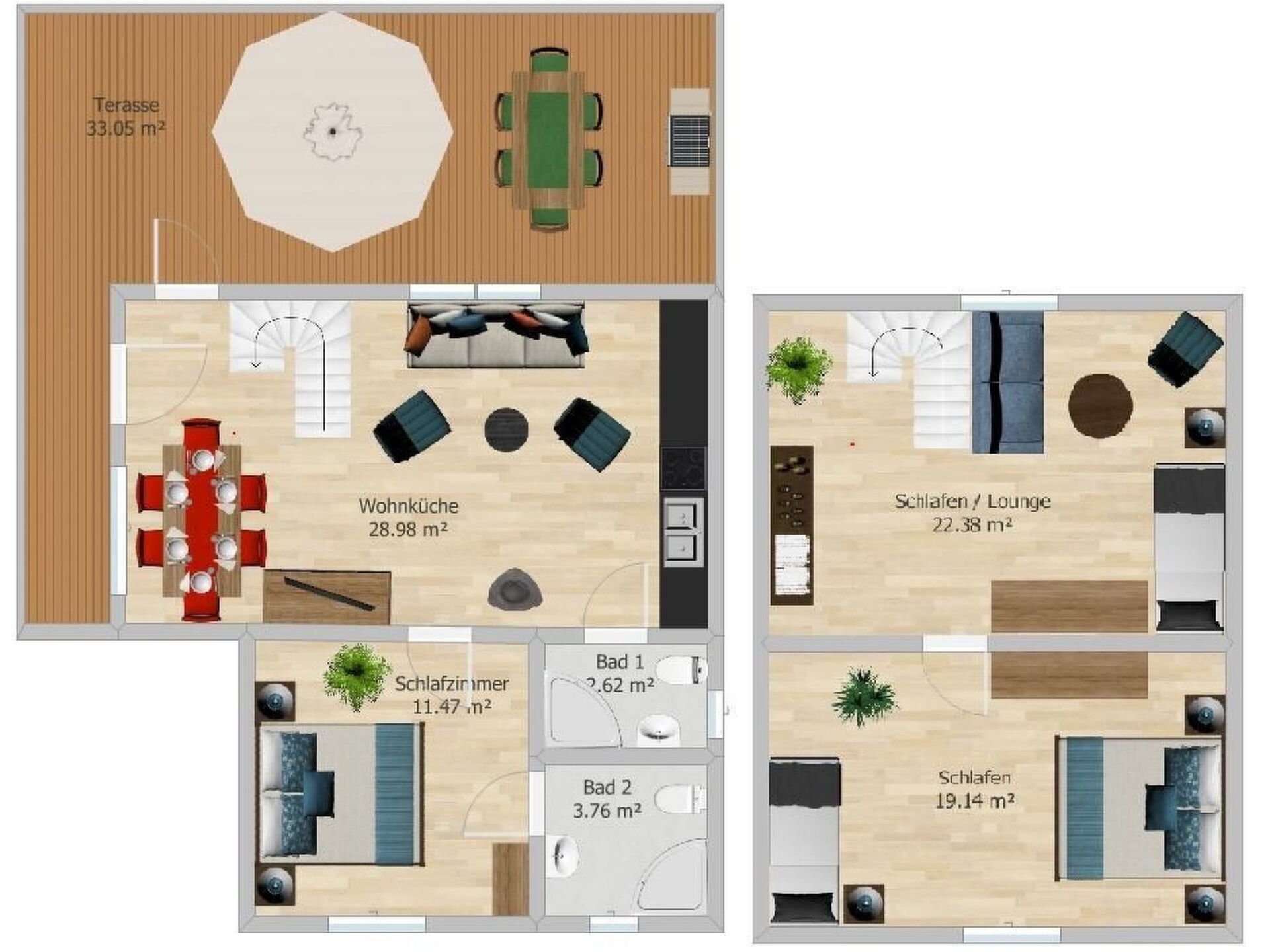 Permitido máximo 3 mascotas / perros. Our cosy log cabin "Haus Amsel" is located in a green holiday home estate surrounded by Pomeranian woodland on the edge of the village of Bodstedt and the nature reserve "Vorpommersche Boddenlandschaft". It therefore guarantees a relaxing and peaceful holiday. A mild coastal climate, kilometres of fine sandy beaches and rustic forests create an idyllic location. Time out in the countryside - an ideal holiday destination at any time of year away from the hustle and bustle of the seaside resorts We are looking for permanent/regular tenants for our weekend house who would like to use it for their leisure time. Your rent is an annual rent and is calculated on the basis of seasonal days of use. If you are interested and have any questions, please feel free to contact us, your possible times will be coordinated with the Hauschild and Tapfer family and are visible in the occupancy plan. spend your holiday in our lovingly designed "Haus Amsel". The property covers 510 m² and the living space in the house is approx. 110 m². The log cabin was completed in January 2014. On the ground floor there is an open, fully equipped kitchen (if something is missing, we will take care of it), the living room with a couch and a beautiful, cosy fireplace, two bathrooms with large showers and hairdryers and a bedroom for 2 people. The ground floor is tiled and has underfloor heating. The sunny terrace is a wonderful place to relax and enjoy great barbecue evenings. There are garden chairs with adjustable backrests and cushions for sunbathing and a column air grill. The garden invites you to play, relax, linger and unwind, and there is sleeping accommodation for a further 5 people on the upper floor. A small lounge invites you to read. Of course, a high chair and travel cot are available for the little ones.We ask for your understanding that the house is a non-smoking house.pets are welcome.friendly hosts are a matter of course for us: The contact person on site, the Wolli is at your disposal for all questions & problems.the settlement: The holiday home settlement consists of 28 holiday homes and the Café & Bar Wolli. Due to the private road, only a few foreign cars stray into the estate, so it is possible to let your children roam the area largely unsupervised. New friendships are often formed while romping through the woods and meadows. The plots are all so large that you can retreat and unwind. The diverse architectural styles of the houses are interesting to look at and create a well-balanced neighbourhood. The "Östlicher-Backstein-Rundweg" cycle path, located directly in front of the estate, takes you around the entire Bodden, approximately 80 kilometres. This can easily be done in one day. The beautiful Baltic Sea beach in Zingst is approx. 30 minutes by bike. The cycle path is also suitable for inline skates, roller skates and skateboards. Jogging and Nordic walking are also recommended.Bodstedt: The small harbour with its typical wooden fishing boats, the Zeesenboote, is particularly beautiful to look at. The oldest Zeesen boat regatta takes place every year on the first weekend in September, and there is a landing stage for boat trips around the Bodden and for boat transfers to the Darß. The local beach is only three minutes away by bike. The shallow water zones are ideal for beginners and water rats. Adults can relax on the large lawn next to it. The village has three small restaurants serving fresh fish and fried potatoes. The fisherman supplies holidaymakers and locals with fresh and smoked fish every day. Whether by bike, on foot or on horseback - experience the landscape and the charm of the village up close and personal.SurroundingsYou will spend your holiday in a quiet location. The Baltic Sea spa resort of Zingst (10 km) and the Baltic Sea resort of Prerow (18 km), both characterised by maritime traditions, are not far away. Prerow Bay is one of the most beautiful beaches in Europe. Good shopping facilities, restaurants and evening events can be found in Barth (7 km). The Bodden and the Baltic Sea are an attractive area for water sports enthusiasts and there are countless activities on offer. Hiking is in: it's worth taking a look off the beaten track, especially in autumn when thousands of cranes stop to rest on the Zingst.highlights in the surrounding area- Störtebeker Festival on Rügen (75 km)- Climbing forest in Born (23 km)- Karls Erlebnishof in Rövershagen (41 km)- Marlow bird park (38 km).