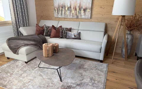 Se amuebló bajo el lema: diseño moderno con encanto alpino. Muebles y accesorios muy cómodos y elegantes de marcas conocidas hacen de sus vacaciones toda una experiencia.