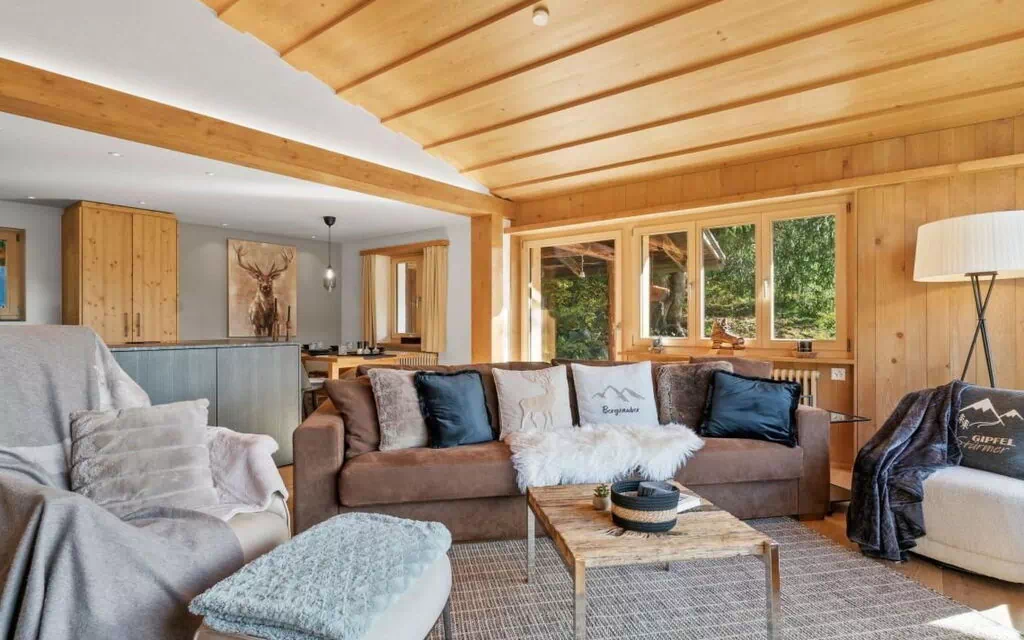 Welcome to our exquisite chalet in the highest town in Europe. This luxury retreat not only offers the most beautiful views of Davos, but also a modern interior with three cozy box-spring beds and a charming bunk bed. From the living room you can enjoy spectacular sunsets, while the open fireplace provides cozy warmth after a day on the slopes of Davos. The attention to detail is not only reflected in the high-quality furnishings, but also in the amenities: Nespresso coffee, a luxurious and fully equipped kitchen, cosmetics and four outdoor parking spaces are available, for example. What's more, the chalet is just a 10-minute walk from the Parsenn ski slope, making it an ideal base for ski enthusiasts. After an exciting day in the great outdoors, you can look forward to a comfortable retreat that offers both relaxation and adventure. Welcome to your exclusive chalet in Davos, where luxury, nature and first-class comfort merge to create an unforgettable experience! We look forward to welcoming you to this unique environment.Other living room features (Living room1): Wonderful panoramic window with a view of the whole of Davos; fireplace; high-quality equipped kitchen; sound system and TV with Netflix and a wide range of TV optionsOther bedroom furniture (Bedroom1): Beautiful box spring bed with great furnishings, Netflix TVNearby sports facilities: Mountain climbing, Ice skating, Golf course, Canoeing, Climbing, Bike tours, Toboggen, Rowing, Skiing (alpin), Cross-country skiing, Sport center, Water skiing, Sailing. 4006