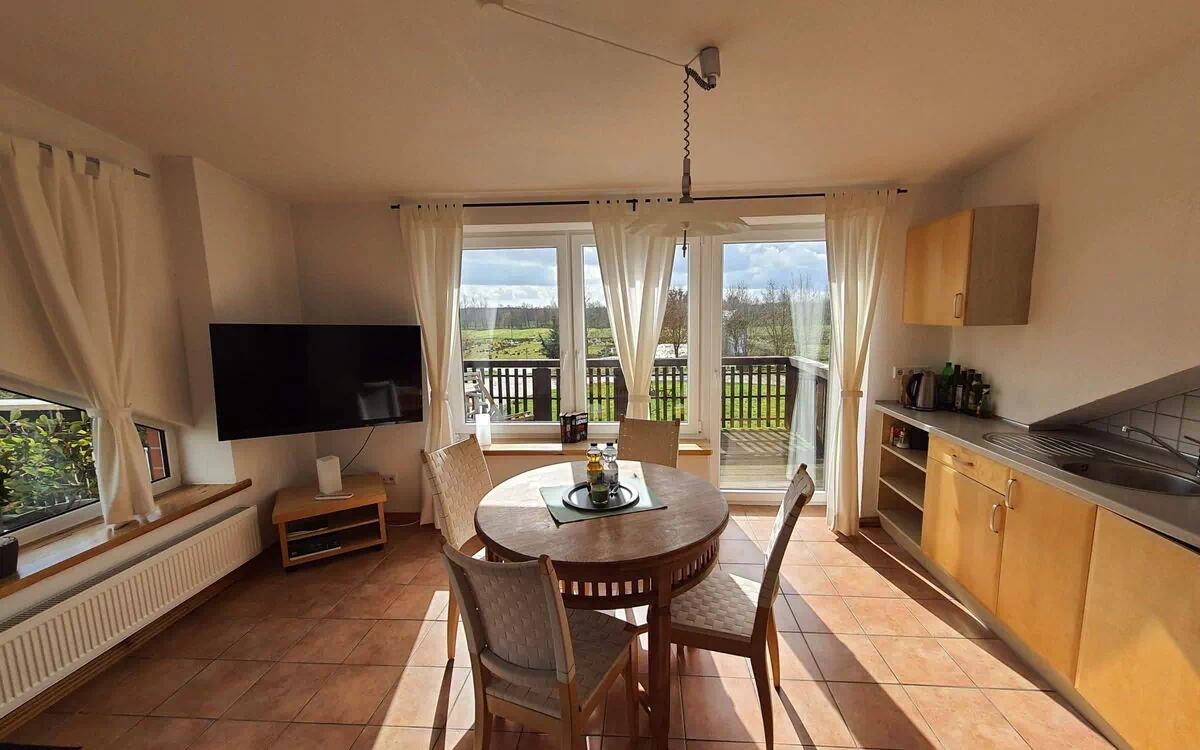 The Brahms flat for 2 people has a combined living/dining room with kitchenette, a separate south-facing balcony, a bathroom with bathtub (no shower) and a separate bedroom with double bed with a view of the neighbouring indoor riding arena. The flat is, like all others, equipped with a high-quality burr walnut polished, new Fenner piano.The large covered terrace with seating, a gas and charcoal barbecue and a fire basket offers plenty of opportunities for cosy evenings with family and friends.Living and dining area:The living, cooking and dining area offers enough space for two people. The sofa can be used as an additional sleeping option.bedroomThe bedroom is furnished with a large double bed and a three-door wardrobe. The view from here into the riding arena is often used as a box seat at horse shows and training sessions.View of nature:From the large panoramic glass front, you have a wonderful view of nature where no car noise and no light pollution disturb this idyll.Piano:A piano is ready tuned and ready to play for every piano player or just to try it out. You will find more upright and grand pianos in our showroom on the premises.In the middle of a moor nature reserve, where peace and quiet is guaranteed in the evening. The Sund holiday flats are located in the middle of the beautiful moorland landscape of East Frisia. Countless leisure facilities are only up to 10 kilometres away. Endless walking and cycling paths start directly from the farm.On the sun deck you have plenty of space to have breakfast together in the morning or simply to relax and unwind.
