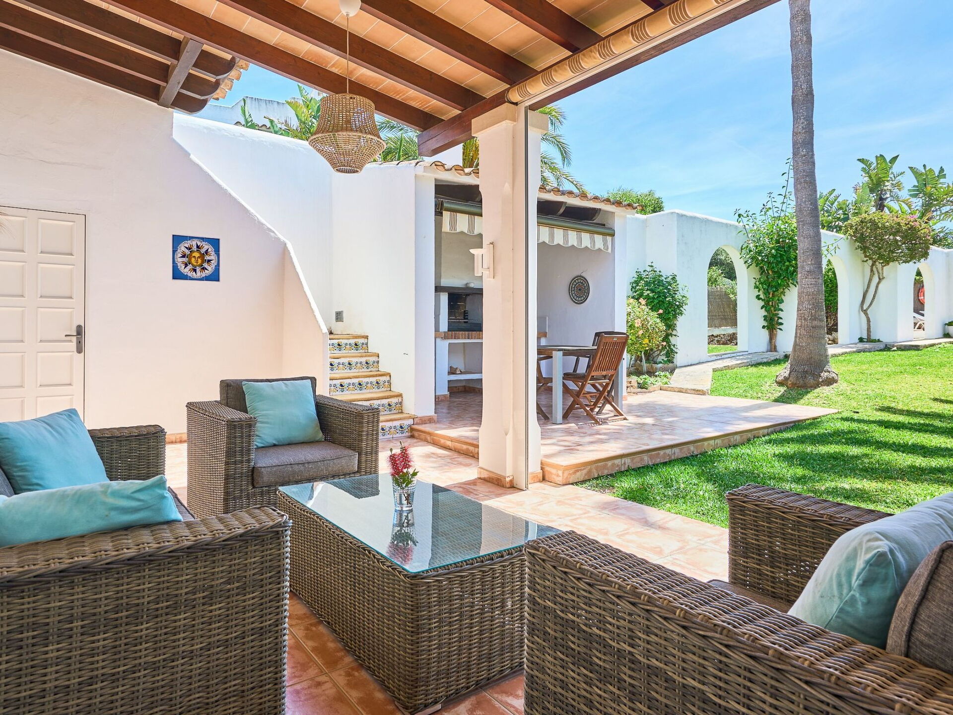 Discover this inviting villa in Cala d'Or, Mallorca, which is perfect for up to 6 people and offers everything you need for a relaxing holiday. With a private pool and enchanting garden in a peaceful setting, this holiday home is the ideal retreat. Just a few steps away from the picturesque marina, this location invites you to enjoy unforgettable experiences close to the sea.The interior of the holiday home is spacious and offers a unique combination of comfort and functionality. The hall opens onto a large room with a relaxation area and an open-plan kitchen with dining area. The kitchen is equipped with a ceramic hob, an espresso pot, a kettle and a dishwasher, making self-catering a pleasure. A bedroom with double bed and en suite bathroom, including separate bath and shower, completes the interior.The outdoor area of this holiday home is a real highlight. The terrace with a brick barbecue invites you to enjoy al fresco meals together, while the adjoining lawned garden leads to the pool area, which is exclusively for your use. Here you can relax in complete privacy and enjoy the Mallorcan sunshine.The villa is ideally located just 700 metres from the beach and the sea. The centre of Cala d'Or, with its numerous shops and restaurants, is just 2000 metres away. A grocery store is conveniently located just 550 metres away, making self-catering a breeze. The peaceful surroundings guarantee a relaxing stay, while the proximity to the coast and the town centre offers numerous leisure activities.At this charming villa in Cala d'Or, you can look forward to an unforgettable holiday that perfectly combines relaxation by the pool with exploring the wonderful surroundings of Mallorca. Enjoy the peace and quiet in your private garden or discover the nearby beaches and the lively town centre. An ideal holiday home for families or friends who want to create precious memories together. ESFCTU0000070080007680530000000000000000000ETV/13