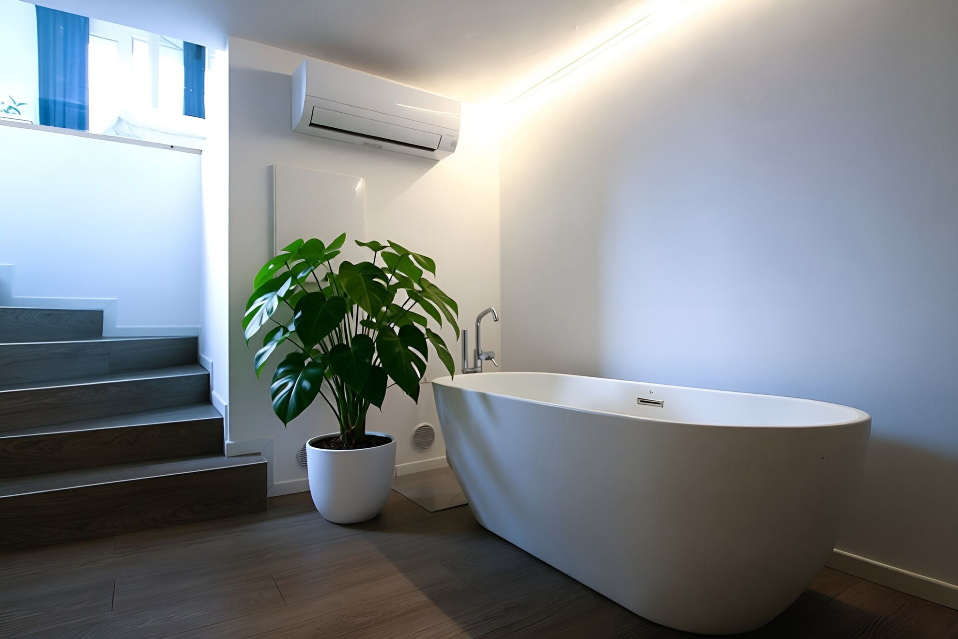 Habitación con baño 1: cama doble, WIFI internet, aire acondicionado, televisión, lavabo, baño, bidé, bañera, ducha, secador, acceso al jardín.