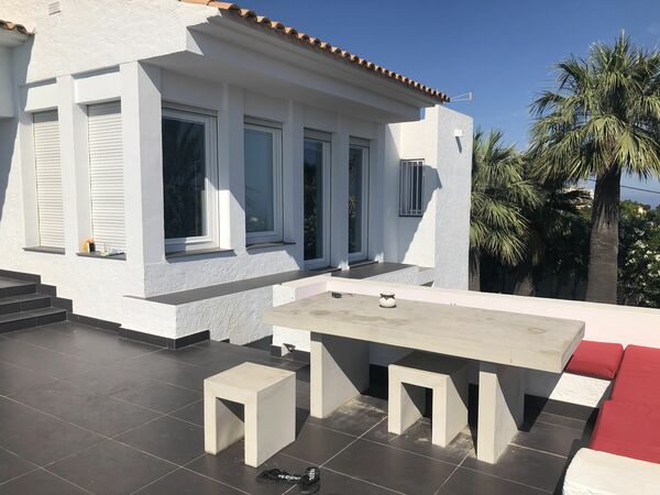 "Palm Spring", villa 4 estancias 200 m2. Espacioso y luminoso, con mobiliario moderno y de estilo: salón-comedor 65 m2, en 2 niveles con aire acondicionado y bomba de calor, caliente. Salida a la terraza, a la piscina. 1 dorm. con 1 cama de matrimonio, ducha/WC, TV satélite, aire acondicionado y bomba de calor, caliente. Salida a la terraza, a la piscina. 1 dorm. con 1 cama de matrimonio, ducha/WC, aire acondicionado y bomba de calor, caliente. 1 dorm. con 1 cama de matrimonio, ducha/WC, aire acondicionado y bomba de calor, caliente. Cocina (horno, lavavajillas, microondas, congelador). Salida al jardín. WC separado. Jardín grande. Muebles de terraza, barbacoa, tumbonas, rincón para sentarse. Vista panorámica espléndida al mar y a las montañas. El alojamiento dispone de: lavadora, plancha. Internet (Wifi, gratis). Garaje (2 Coches). A tener en cuenta: casa para no fumadores. TV solamente ES, FR. La planta baja esta cerrada. Muebles de diseño moderno. AT-423070-A