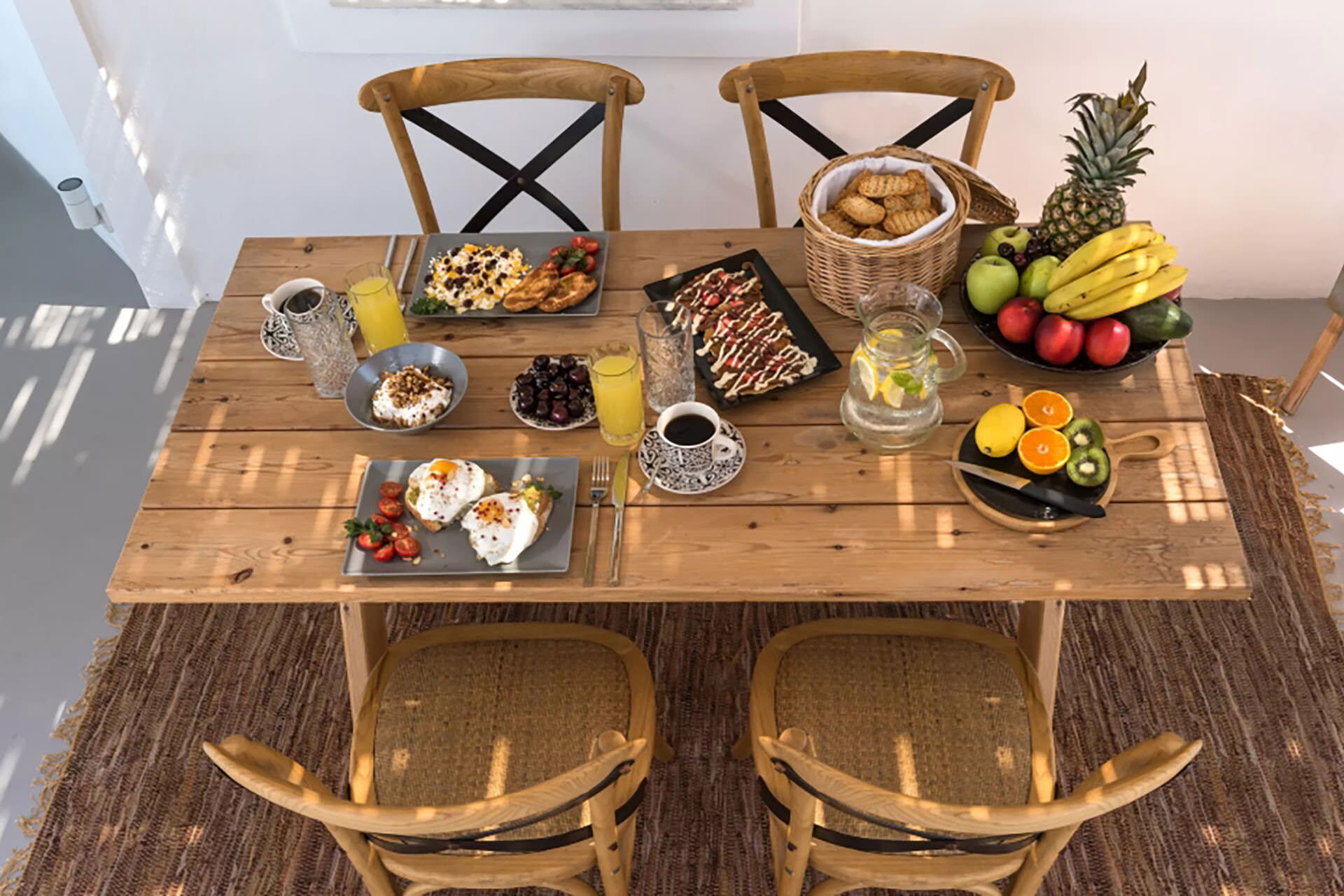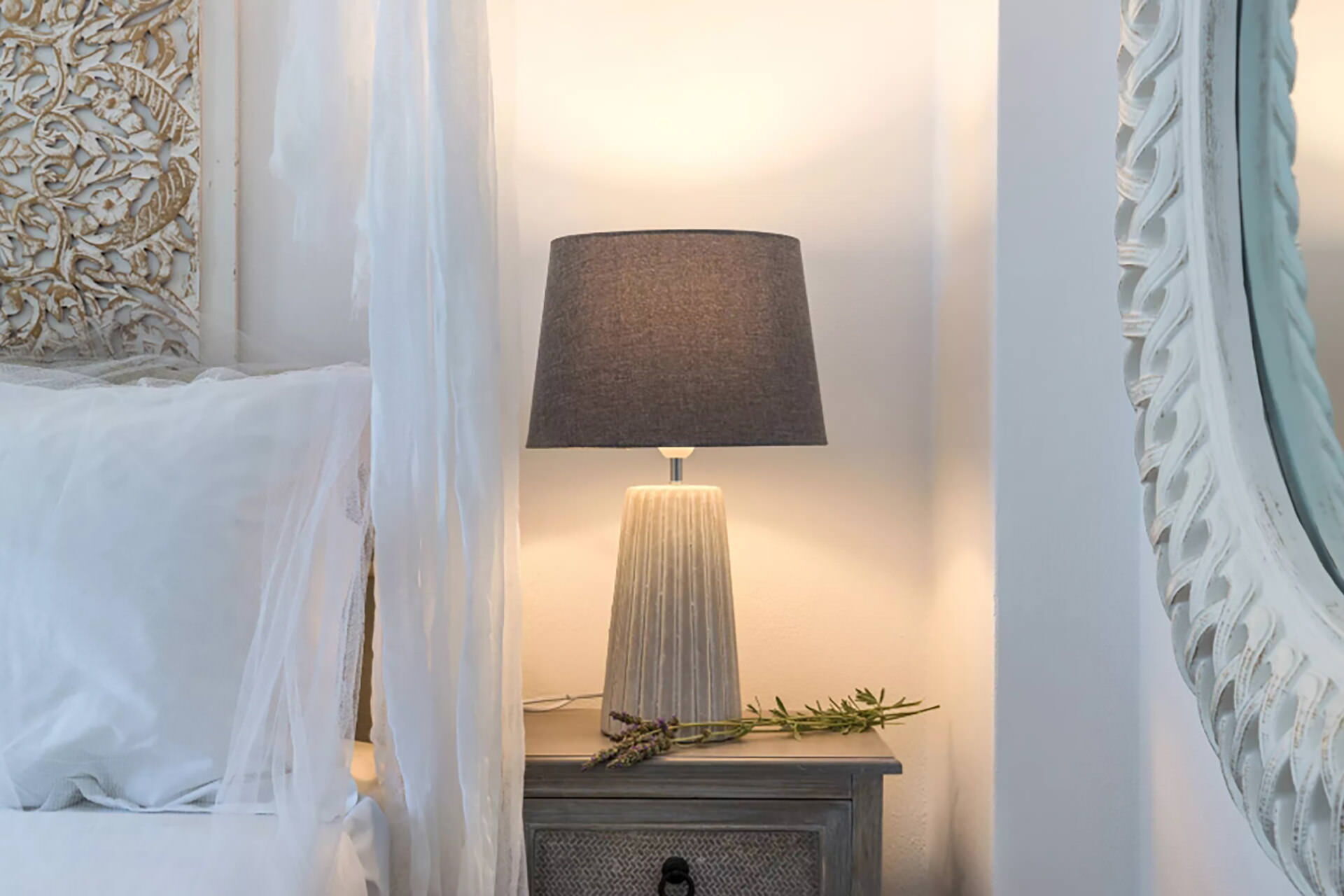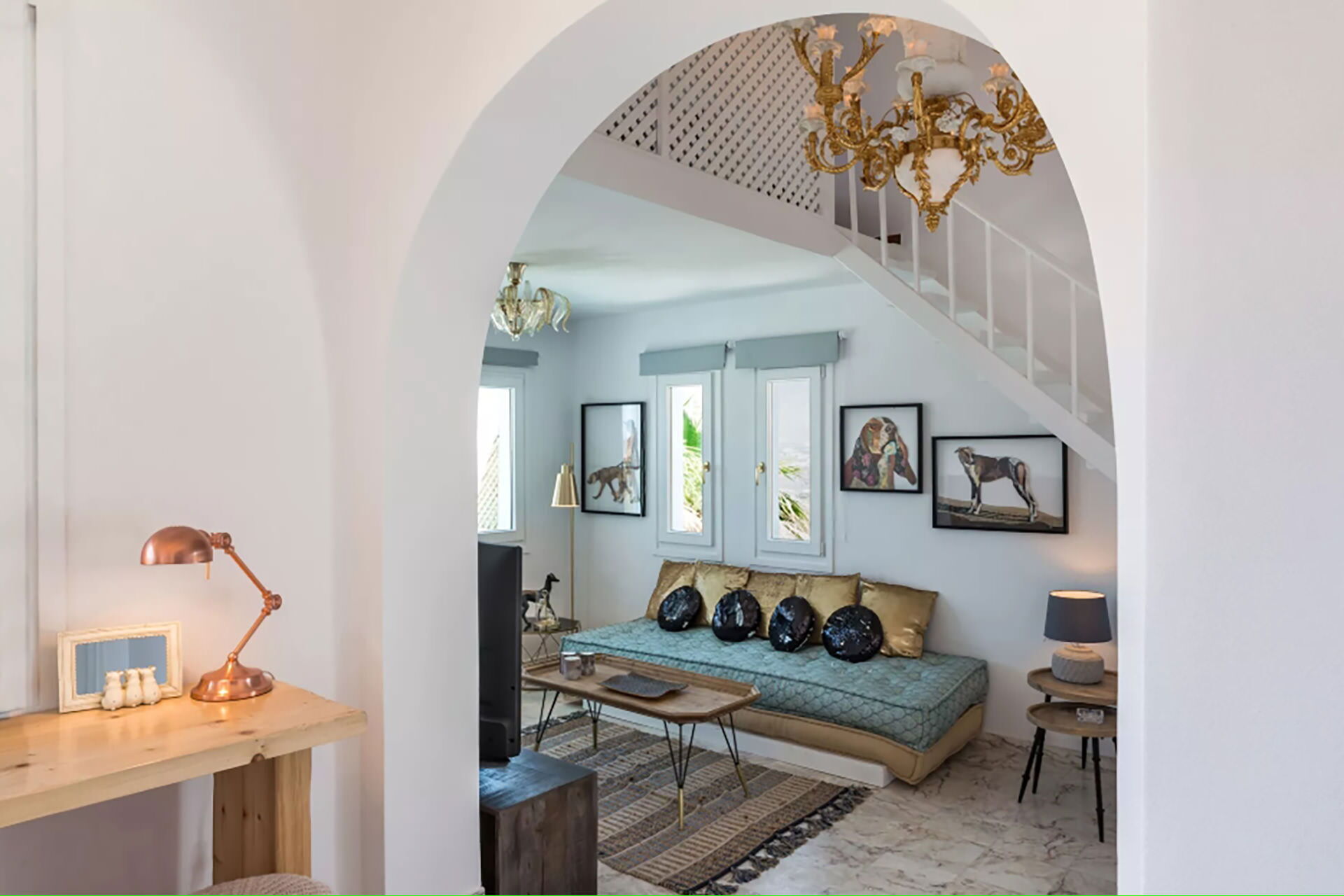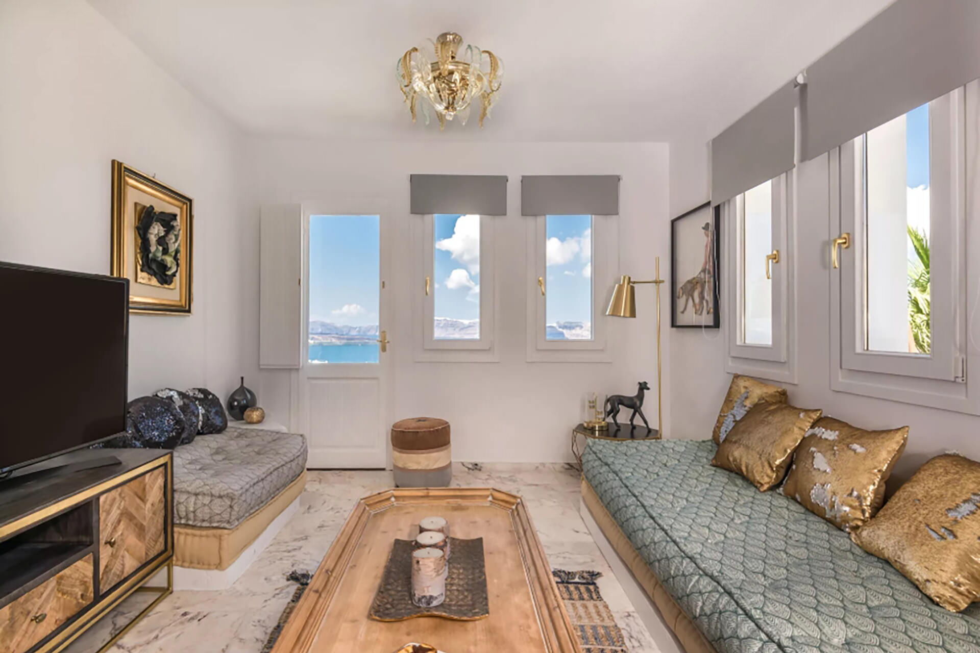 Los espacios exteriores de Villa Sean están diseñados para aprovechar al máximo el entorno natural. Una piscina privada es el elemento central, acompañada de tumbonas, mobiliario de terraza y una zona de comedor al aire libre con mesa de comedor, todo con vistas a la caldera y el mar. Un Jacuzzi exterior proporciona un espacio adicional para la relajación, mientras que un pequeño bar invita a los huéspedes a disfrutar del entorno. Una terraza exterior dedicada está disponible, adecuada para actividades como yoga o Pilates.