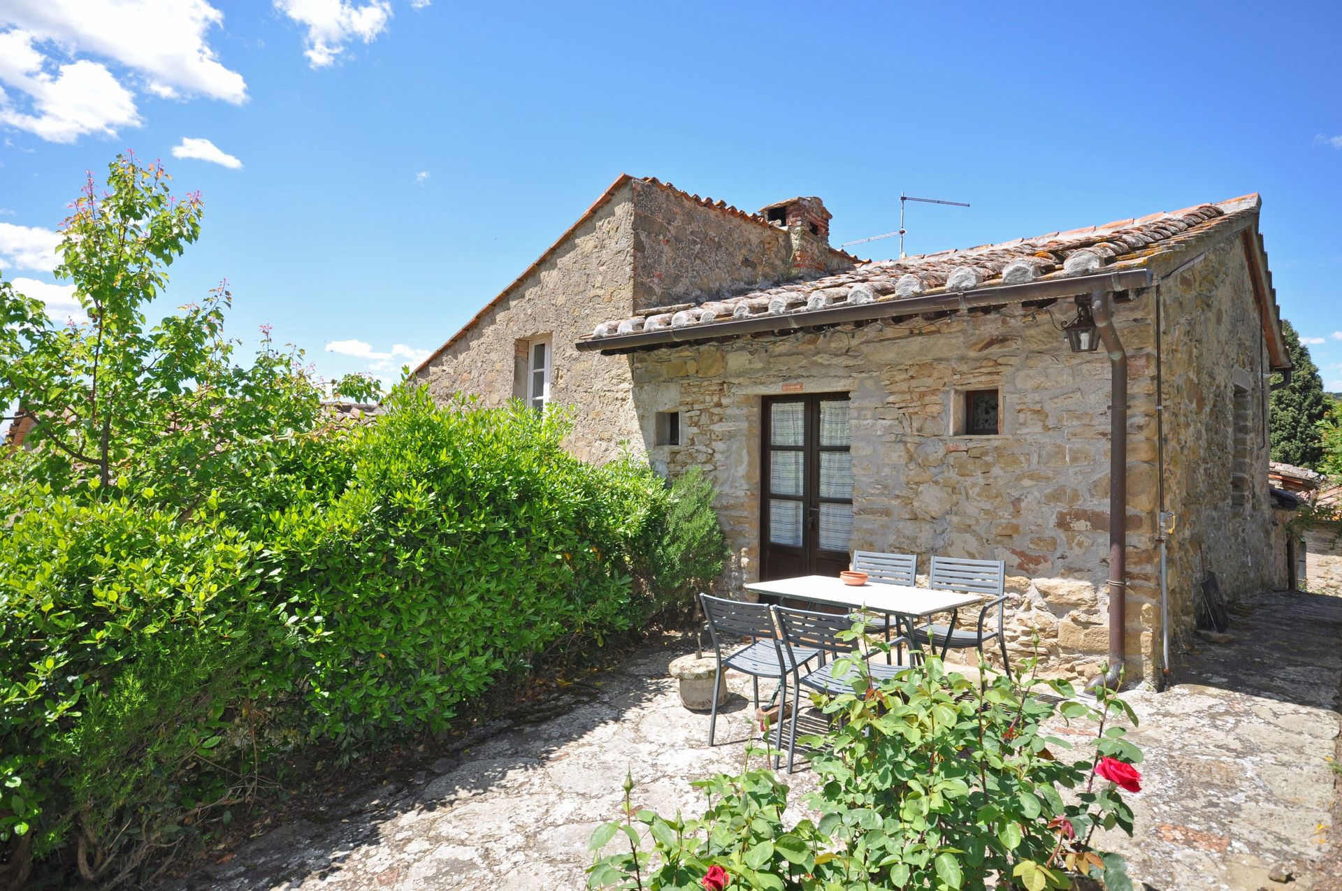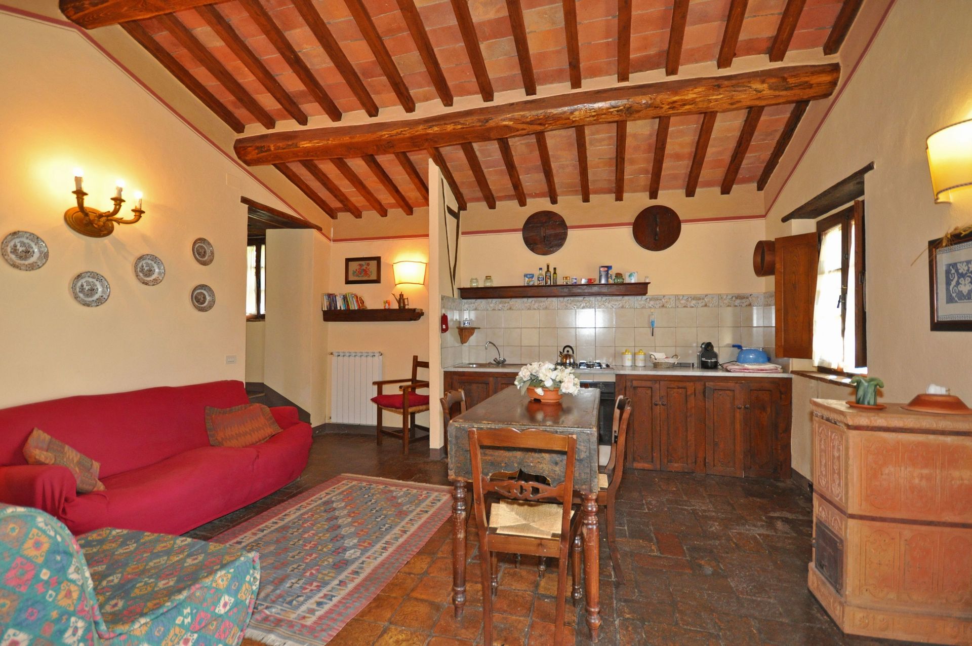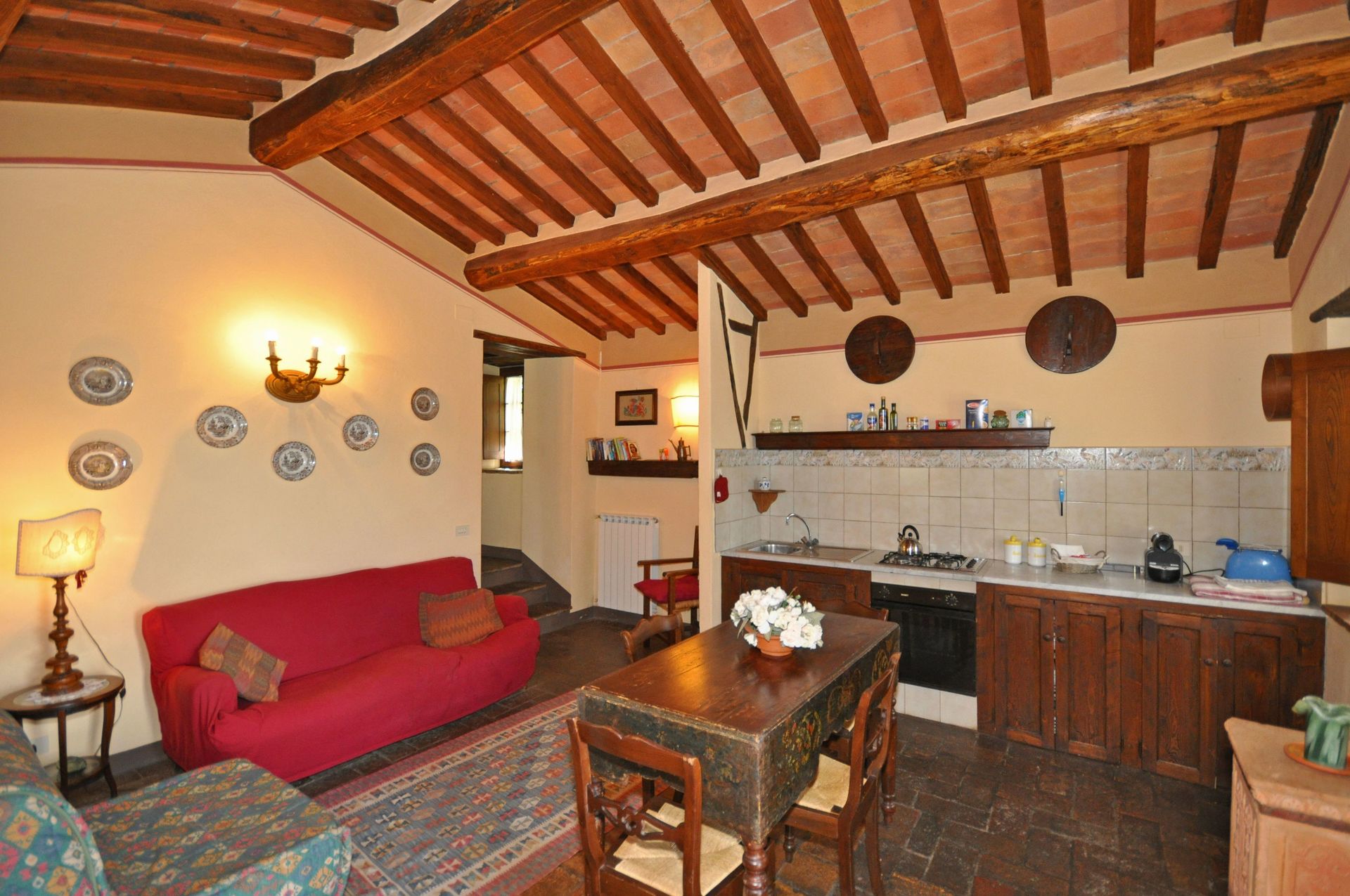 Planta Baja: entresuelo (Ingreso a travèz de un balcòn ):Sala con sofa cama personal , cocina americana y comedor . 3 escalones màs en alto : cuarto matrimonial , baño con ducha. Balcone privado, equipado.