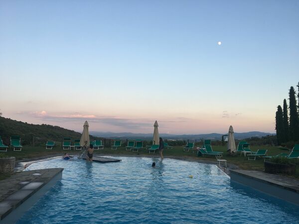 The pool was a little outdated (some loose tiles) and quite a steep climb. But nice sunbeds and fantastic views. Large umbrellas. Also nice that there was a table tennis and football. We enjoyed the delicious traditional meal together with the other 43 guests. Andrea is a fanastische host. We took some wine and olive oil from the estate back home. Warm soothing atmosphere. Excellent washing machine in the house available. WIFI at the reception free of charge. A little remote (about 3 km from the Chianti Road). To get fresh bread you will drive 8 km (and back). From Figline within half houryou can reach Florence by express train (recommended). We enjoyed the beautiful surroundings. Fam. Ter Borg and Steur from Paterswolde (4 teenagers).¿Recomendaría esta propiedad a un amigo? Sí