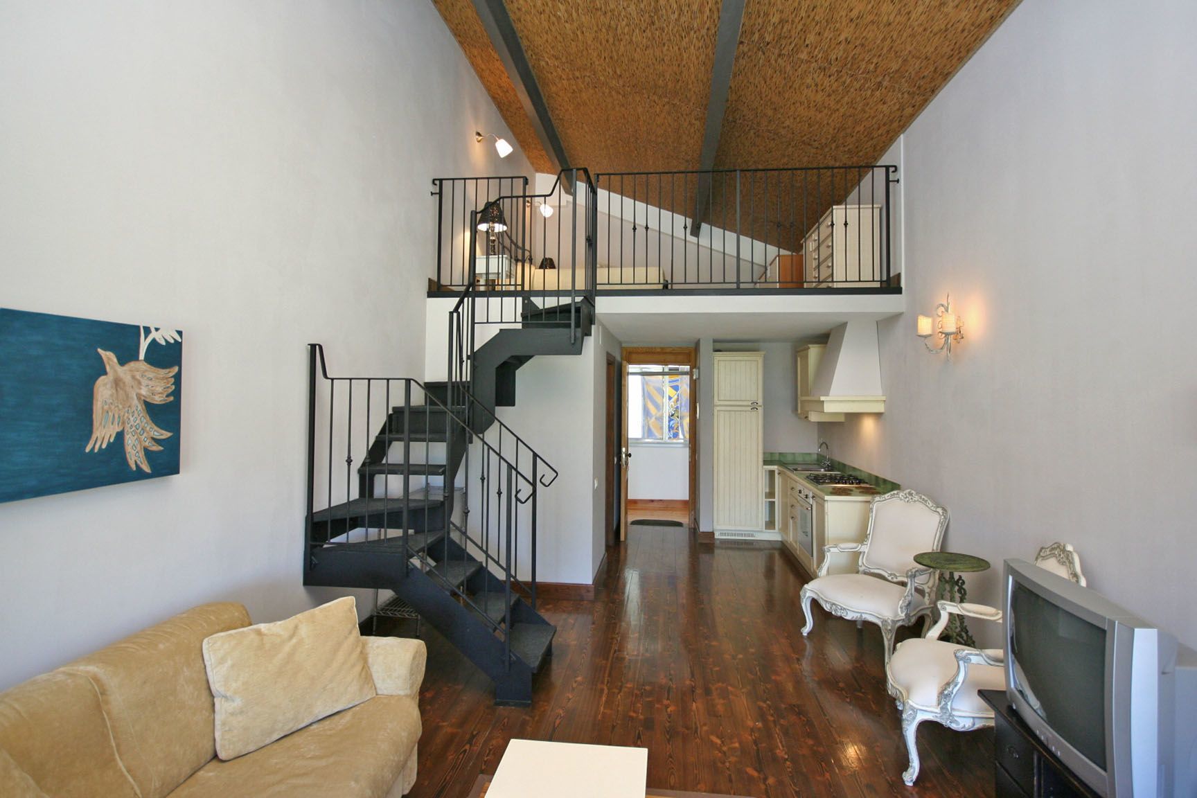 Loft realzado con cama matrimonial.