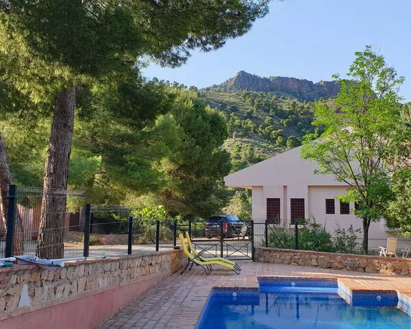Situada en el corazón de la campiña española cerca de Totana, en la región de Murcia, la casa de vacaciones "De La Cruz" ofrece un refugio apartado y tranquilo para quienes buscan una auténtica escapada rural. Construida originalmente en 1980 y renovada cuidadosamente en 2017, esta propiedad soleada se encuentra en un entorno tranquilo y arbolado, rodeada de naturaleza y alejada del bullicio de las zonas turísticas. El terreno completamente vallado se extiende sobre 6.000 m2, proporcionando una sensación excepcional de privacidad y espacio.