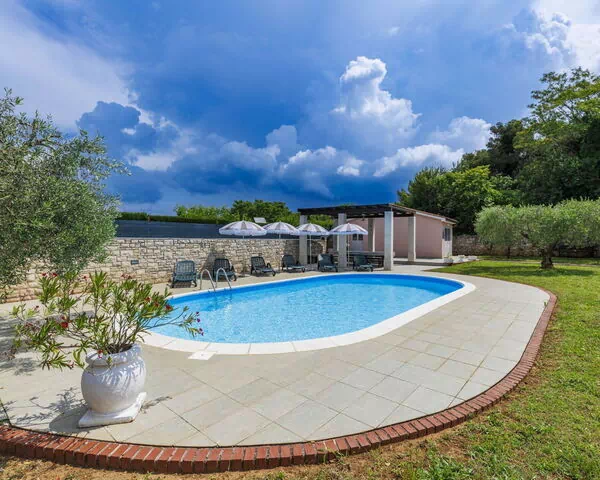 Casa semiadosada "Villa Maran", agradable de 3 plantas. Por encima Zambratija, a 6 km del centro de Umag, lugar tranquilo, soleado, elevado, a 800 m del mar, en el campo. Privado: terreno 1'200 m2 (vallada), jardín con césped 300 m2, piscina (10 x 5 m, 135 cm de profundidad, Disponible por temporada: 01.May. - 30.Sep.). Ducha exterior, cenador, muebles de jardín, barbacoa. En el inmueble: acceso a internet, lavadora. Aparcamiento junto a la casa en el mismo terreno. Tienda 1 km, restaurante 1 km, parada autobús 7 km, estación de tren 35 km, playa de arena 1 km, playa rocosa 1 km. Campo de golf (18 hoyos) 6 km, tenis 1.5 km, polideportivo 1.5 km. El propietario no acepta grupos de adolescentes/jóvenes. Vecindario muy sensible a ruidos. Se ruega respetar la tranquilidad y normas de buen comportamiento.