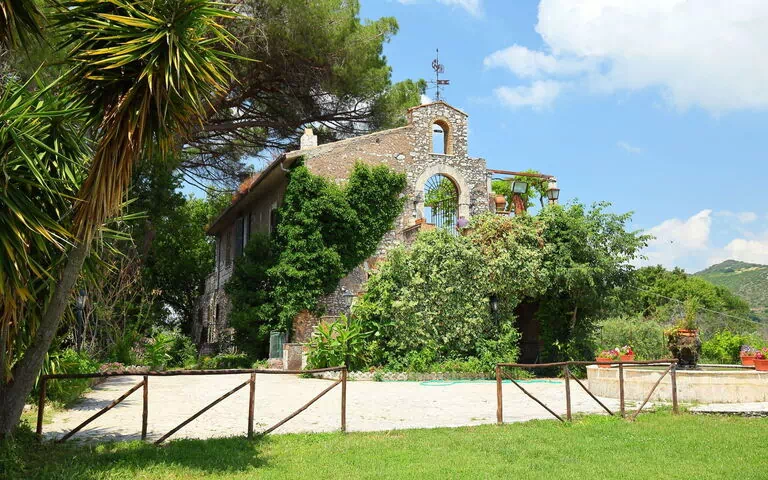 Montecelio a 3 km de Guidonia: Villa "Torretta Serviana", histórica del siglo 17°, reformada en 2013, rodeada de campos. A 1 km del centro de Montecelio, lugar aislado, tranquilo, soleado en una colina. Privado: parque 5 ha con flores y árboles. Muebles de jardín, barbacoa. Acceso estrecho (300 m camino de tierra). Aparcamiento junto a la casa. Tienda 1 km, tienda de comestibles 1 km, centro comercial 2 km, restaurante 1 km, bar 1 km, panadería 1 km, parada autobús 350 m, estación de tren "Guidonia" 3.5 km. Atracciones en los alrededores: Guidonia 13 km, Roma 40 km, Villa Adriana 13 km. A tener en cuenta: coche recomendable. No adecuado para niños más pequeños de 12 años. Grupos de jóvenes sólo bajo petición. En la planta baja se encuentra una sala de recepción, con entrada independiente, utilizada ocasionalmente por el propietario.>A 350 m se encuentra la parada del autobús con conecta Montecelio con Guidonia.