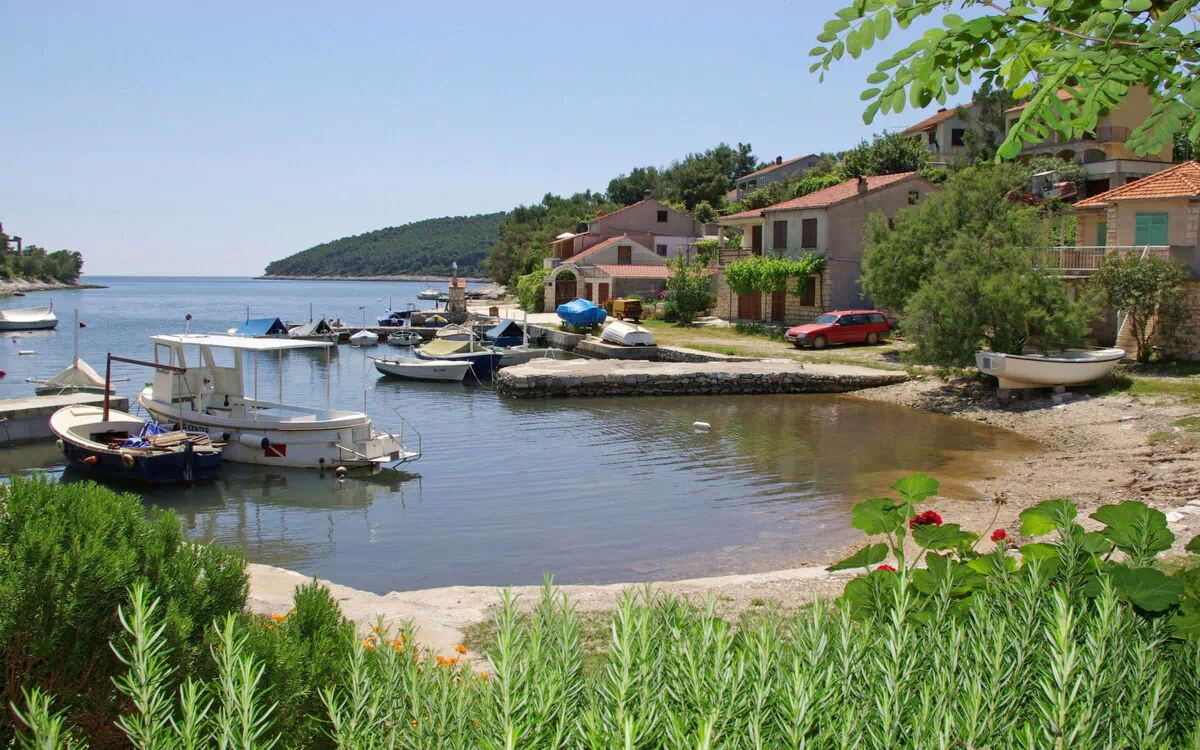 La playa de guijarros se encuentra a 10 metros del apartamento, ofreciendo acceso inmediato a las aguas cristalinas del Adriático. La orientación hacia el sur garantiza abundante luz natural durante todo el día. Un amarre privado con profundidad de 1 metro está disponible como servicio adicional, lo que hace que la propiedad sea particularmente adecuada para huéspedes que llegan en barco o desean amarrar una embarcación durante la estancia.