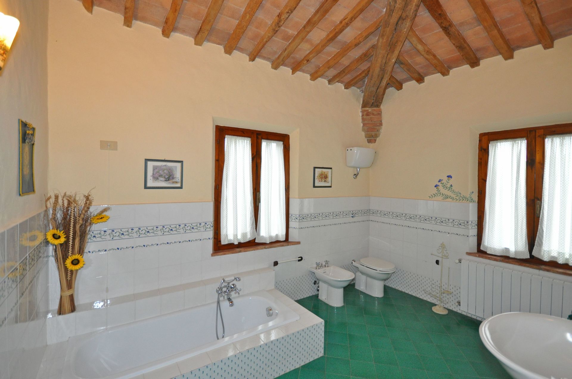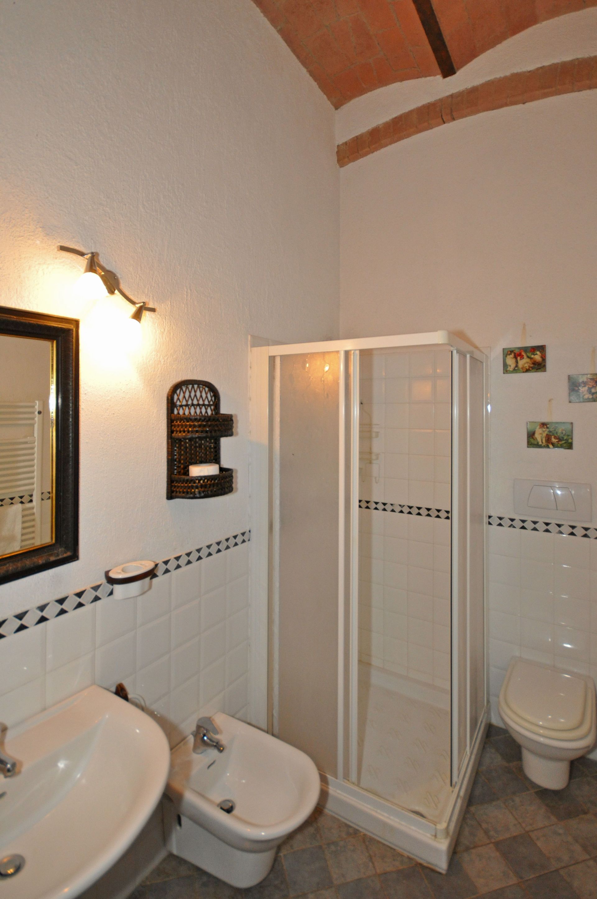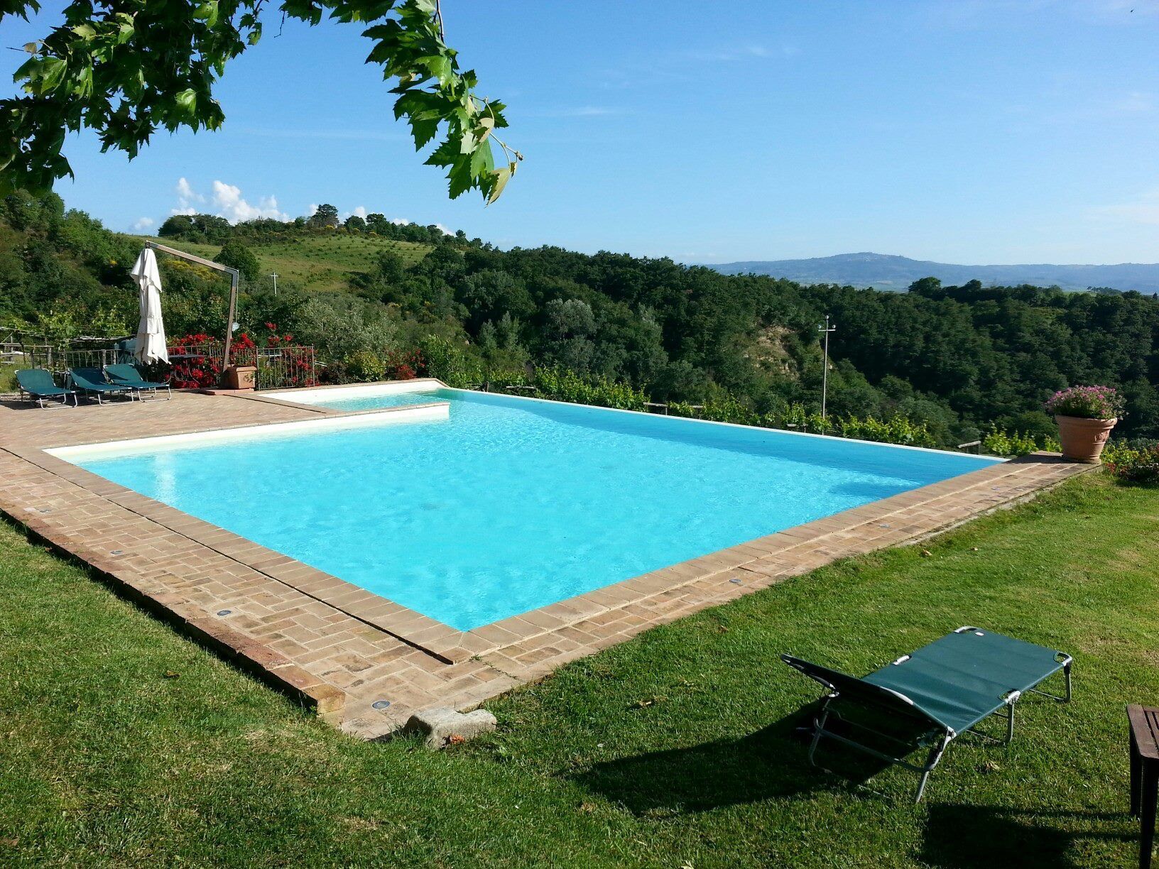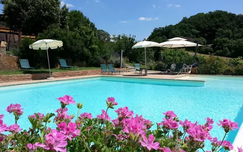 The large swimming pool is placed in the well-maintained garden area of the hamlet and has endless view over the Tuscan countryside below. For the guests' comfort, sun loungers and umbrellas are at their disposal on the terrace surrounding the pool. Built-in steps lead you gradually into the shallow area of the pool.