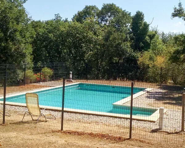 El jardín privado, rodeado de árboles que proporcionan sombra natural y una sensación de privacidad, crea una atmósfera tranquila y restauradora. La zona de césped ofrece amplio espacio para disfrutar del aire libre. La piscina vallada mide 10 x 5 metros con una profundidad de 100 a 180 cm y está disponible del 15 de mayo al 31 de octubre; cuenta con un sistema de alarma para mayor seguridad.