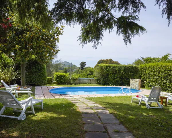 El patio privado, completamente cerrado por una valla de seguridad, proporciona amplio espacio para que los huéspedes disfruten en total privacidad. La piscina de forma arriñonada mide 8 x 4 metros con una profundidad de 150 cm y está disponible del 1 de junio al 30 de septiembre. Una ducha exterior se encuentra ubicada cerca de la piscina. El jardín está amueblado con cómodos muebles de exterior, ideales para tomar el sol o disfrutar de una comida al aire libre. Para quienes disfrutan de la cocina al aire libre, hay disponible una barbacoa y una casa de barbacoa dedicada.