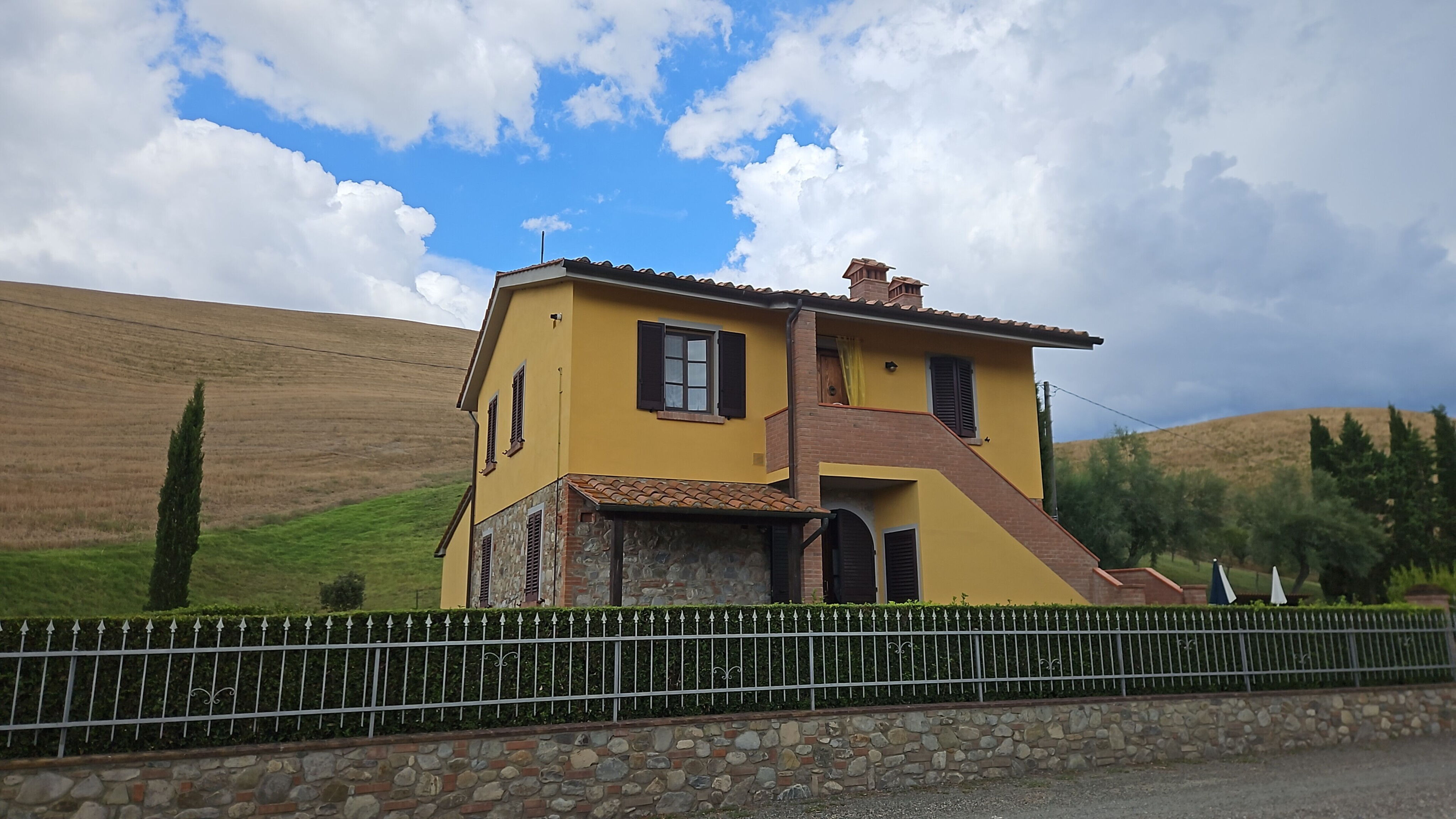 You will find the farmhouse in the tranquillity of the beautiful hills of the Alta Val di Cecina, with a beautiful view of endless, ever-changing natural landscapes. Soft green hills, expanses of golden cultivated fields and endless blue skies, all of which you can enjoy from the garden and your swimming pool. The perfect place, in our opinion, for an unforgettable holiday.