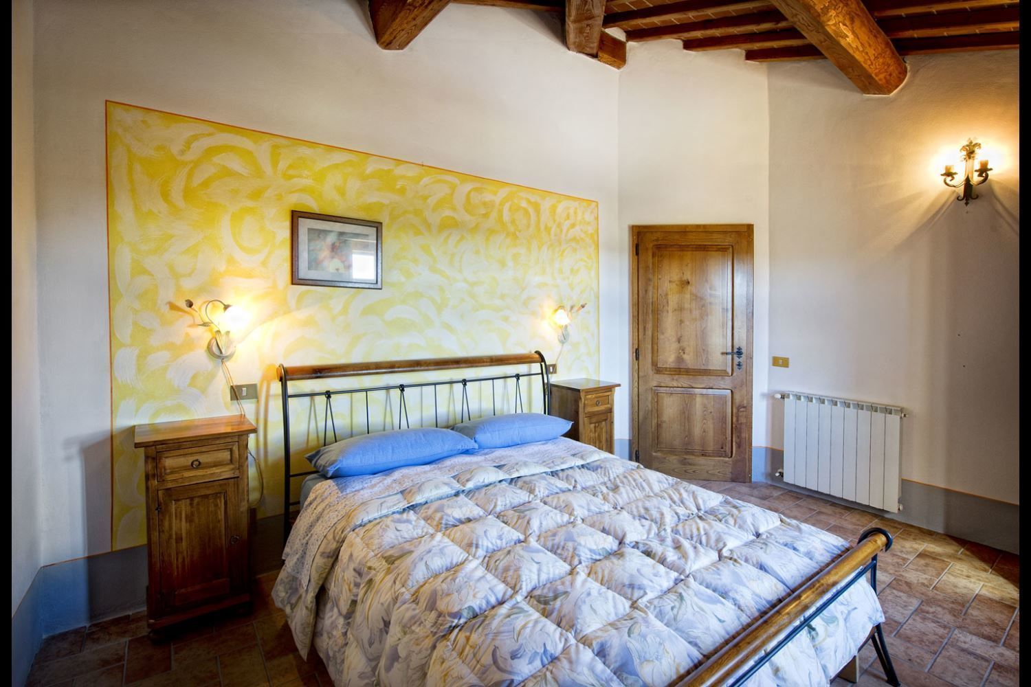 First floor apartment in the main house with entrance from external staircase with typical loggia in common with apartment La Ginestra and composed of living-dining room with kitchen corner, fireplace and double sofa bed, bathroom with shower.