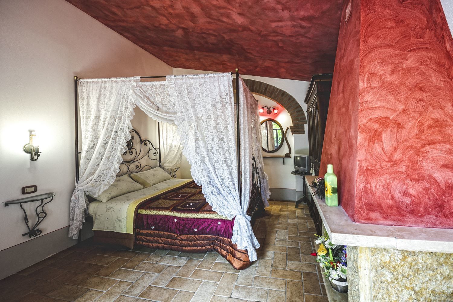 Ground floor apartment in the house Granaio, with entrance through small private porch and composed of living-dining room with kitchen corner and double sofa bed, two double bedrooms both with en-suite bathroom with shower, one suite with French window overlooking the porch, double bedroom with canopy bed and fireplace, private bathroom with shower and a two seats Jacuzzi with chromotherapy. Private gazebo in the garden equipped with table and chairs to eat in the open.
