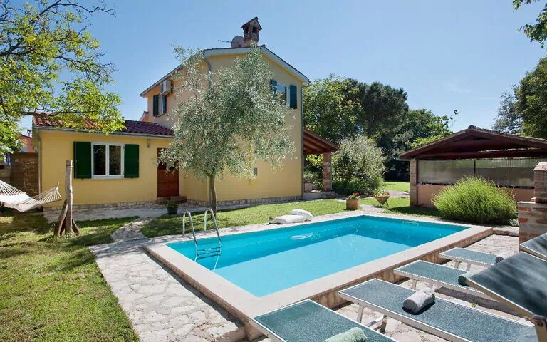 Juricani a 5 km de Umag: Casa unifamiliar "Casa Oliva", bonita del año 1920, reformada. En el aldea Kranzeti, a 2 km del centro de Juricani, lugar tranquilo, soleado, a 7 km del mar. Comunitario: terreno 700 m2 con césped y árboles. Privado: terreno 200 m2 con flores y árboles, piscina rectangular (6 x 3 m, 02.05.-03.10.). Terraza, muebles de jardín, barbacoa. En el inmueble: acceso a internet, lavadora. Aparcamiento junto a la casa en el mismo terreno. Tienda 2 km, restaurante 5 km, playa de gravilla 7 km, playa rocosa 7 km. Campo de golf 20 km, polideportivo 7 km. A tener en cuenta: la propiedad con ref: HR2225.201.1 está situada en la misma parcela.