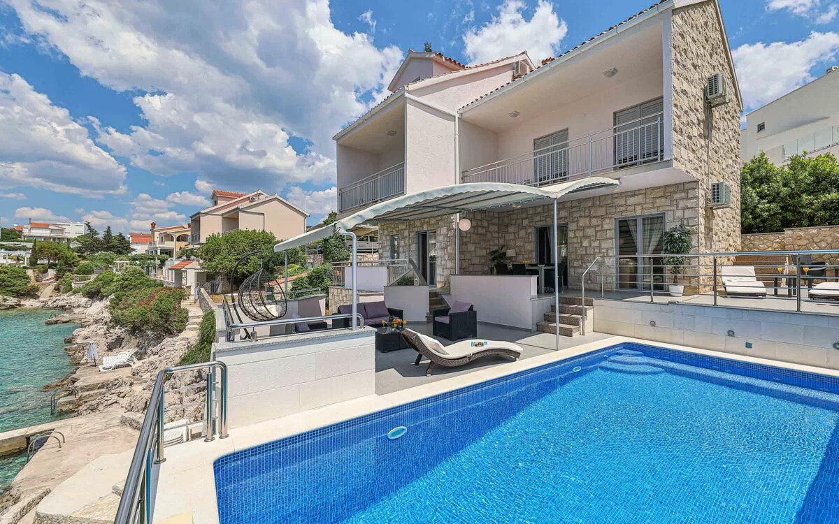 Villa Antonija es una casa de vacaciones de 3 plantas ubicada en la tranquila aldea costera de Ražanj, Croacia, directamente a orillas del mar Adriático. La propiedad se sitúa en una posición soleada y serena dentro de una finca privada completamente vallada de 300 m2, garantizando privacidad y tranquilidad durante la estancia. La villa cuenta con una piscina angular climatizada de 8 x 3 metros con profundidad de 100 a 180 cm, disponible del 6 de abril al 12 de octubre. Se encuentra a 10 km de Rogoznica y a corta distancia de la ciudad histórica de Šibenik.