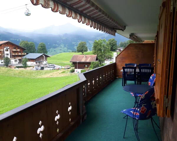 El apartamento tiene una superficie de 70 m² distribuida en 2 dormitorios y 1 baño, con capacidad para 4 huéspedes. La orientación sur proporciona luminosidad a lo largo de toda la unidad. El primer dormitorio está equipado con una cama doble de 160 cm de ancho y 200 cm de largo. El segundo dormitorio dispone de una litera con 2 plazas de 90 cm de ancho y 200 cm de largo cada una. La zona de estar y comedor, de concepto abierto con la cocina, está amueblada con una estufa de leña de estilo escandinavo, televisor de pantalla plana con conexión por cable y radio. La cocina abierta dispone de horno, 4 placas de cocción de vitrocerámica, tostadora, hervidor, cafetera eléctrica y juego de fondue. El baño incluye bañera y WC. El balcón de 20 m² con orientación sur y oeste está amueblado con mobiliario de exterior y ofrece vistas a las montañas y el Eiger.