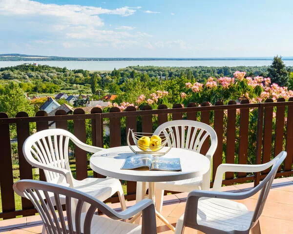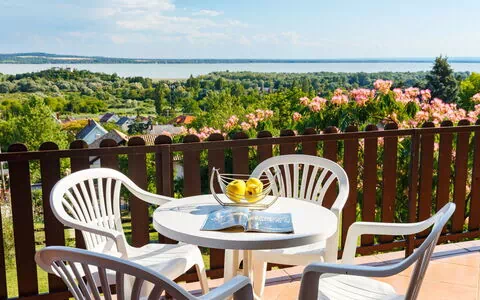 La casa de vacaciones "Panorama" se encuentra en el pueblo de Vonyarcvashegy, a 7 km de la histórica localidad de Keszthely en Hungría. Se trata de una acogedora casa de 3 plantas rodeada de viñedos pintorescos, ubicada en las afueras del pueblo en una posición tranquila y soleada, a tan solo 50 m del borde del bosque. La propiedad ocupa una generosa parcela privada de 700 m² que incluye un césped de 200 m² con árboles dispersos, creando un entorno sereno y verde.