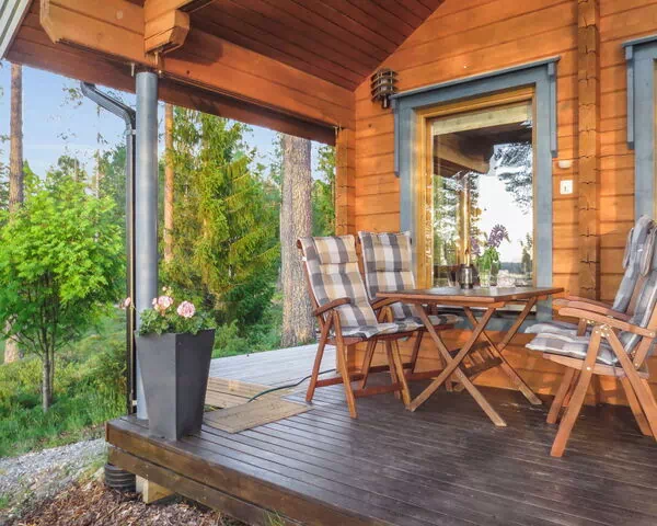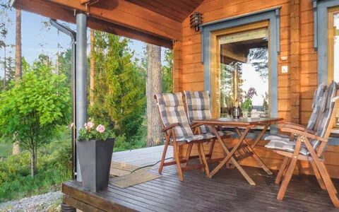 Los espacios exteriores de esta villa de troncos son entre sus características más cautivadoras, ofreciendo acceso directo y privado a la belleza natural del lago Nuasjärvi. La orilla propia de la propiedad se extiende aproximadamente 300 metros, proporcionando amplio espacio para la relajación y recreación a lo largo del agua. La playa presenta una orilla profunda y rocosa con fondo de grava gruesa y arena, ideal para quienes aprecian un entorno auténtico a orillas del lago. Un gran muelle se extiende sobre el agua y hay un bote de remos disponible para que los huéspedes exploren el lago a su gusto. Una sauna de playa tradicional y separada de 12 m² se sitúa directamente en la orilla, calentada por una estufa de leña y equipada con luz eléctrica; esta sauna está disponible durante todo el año, aunque del 1 de octubre al 30 de abril el agua para la sauna proviene del grifo o del baño en lugar del lago. Tanto la sauna como la cabaña principal cuentan con sus propias áreas de terraza dedicadas, creando espacios exteriores distintos para la relajación y el disfrute. Un cobertizo con parrilla y una cocina exterior también están disponibles en la propiedad, completos con una parrilla de gas, haciendo que las comidas al aire libre sean una parte natural y placentera de la estancia. El sitio goza de privacidad y tranquilidad excepcionales, ya que la cabaña se encuentra al final del camino sin tráfico de paso.