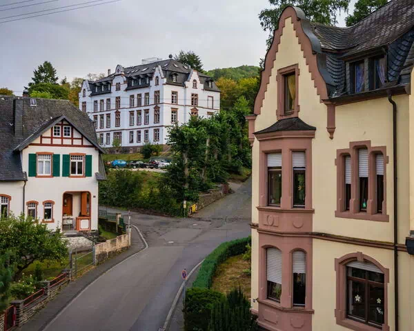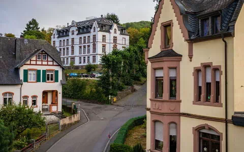 Los alrededores exteriores de la propiedad reflejan el carácter tranquilo y verde del valle del Mosela. La zona residencial del distrito de Trarbach proporciona un ambiente calmo y agradable donde disfrutar del aire fresco y del ritmo de vida que caracteriza esta pintoresca región vinícola alemana.