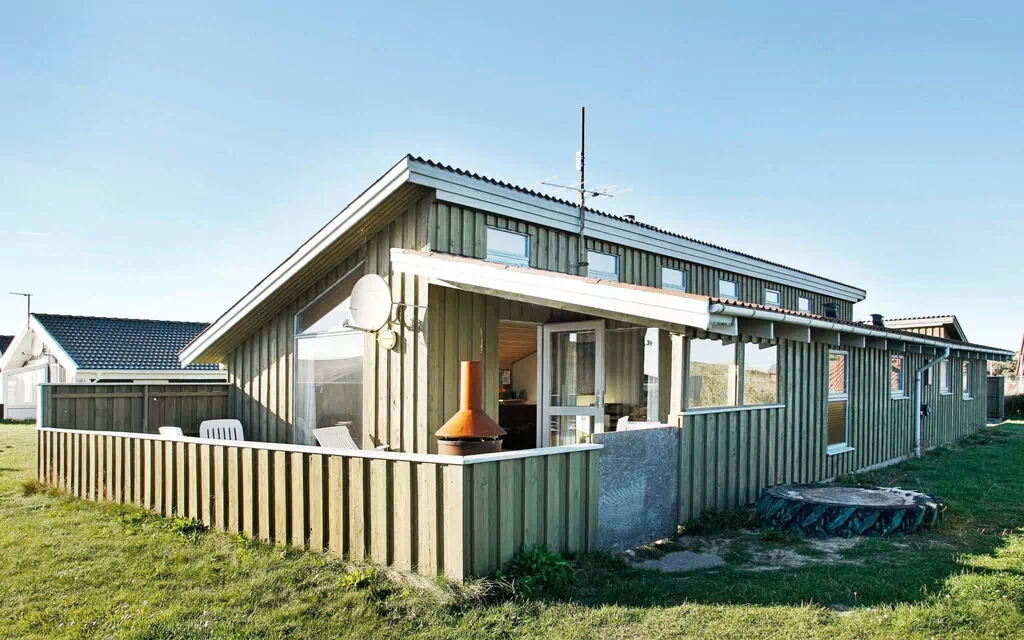 Cabaña vacacional grande y espaciosa con sauna ubicada en un ambiente pintoresco en el pueblo pesquero de Nr. Lyngby aprox. a 5 km de Lønstrup y Løkken y a poca distancia de la playa. La casa tiene 119 m² incluido el entresuelo y por eso tiene mucho espacio para una familia grande o dos familias que quieren pasar juntas sus vacaciones. El espacio habitable es grande con la cocina-salón de concepto abierto, 4 dormitorios, 2 con camas dobles y un entresuelo con 2 colchones y baño con sauna. La casa también tiene una vista pequeña al mar. Hay una terraza pequeña cubierta y una terraza abierta alrededor de la casa al este, sur y oeste. La casa está situada en una parcela abierta en una zona tranquila y hay buenas oportunidades para que los niños y adultos se diviertan al aire libre. Para niños hay columpios y un arenero. 1 salón: estufa a leña, equipo estéreo con reproductor CD, reproductor DVD, Internet inalámbrico gratis, TV, antena parabólica, silla alta 4 dormitorios: (1 Cama Doble)+(1CD)+(2 Camas Individuales)+(2CI), cuna 1 entresuelo: (2E) cocina: cocina eléctrica, frigorífico-congelador, congelador de 60-99 l, microondas, campana de cocina, cafetera, lavavajillas, lavadora, secadora Baño/WC: WC, lavabo, cabina de ducha, calefacción por suelo radiante, sauna, solarium y: Terraza, terraza cubierta, calefacción eléctrica, objetos de parque infantil, parrilla de jardín, parcela natural de 1250 m2, mobiliario personal, área de casas vacacionales, casa para no fumadores.