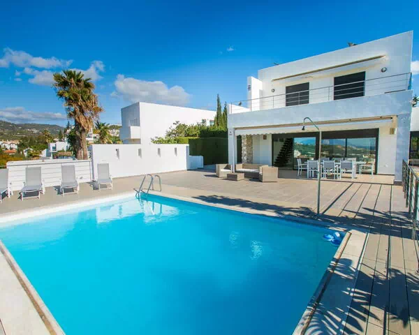 La villa "Venezuela" tiene una superficie de 212 m² distribuida en 2 plantas, con capacidad máxima para 8 huéspedes, 4 dormitorios y 3 baños. La orientación suroeste favorece la entrada de luz natural durante todo el día.