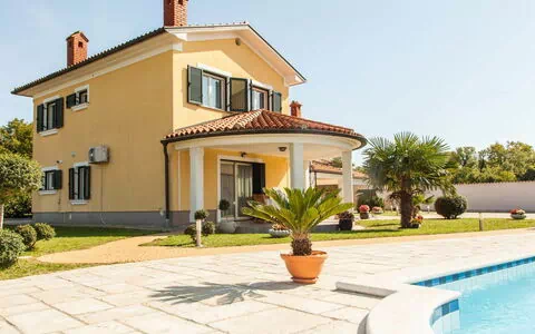 La casa de vacaciones "Mirela" se encuentra en el tranquilo caserío de Trgetari, en el corazón de la campiña de Istria, Croacia. Se trata de una casa unifamiliar de 2 plantas que aloja a un máximo de 5 huéspedes. La propiedad está situada en una posición elevada y tranquila, sobre una parcela vallada compartida de 1.800 m2 con un jardín bien mantenido que ofrece una auténtica sensación de espacio y privacidad. La piscina privada angular de 11 x 4 metros, con una superficie de 48 m2 y una profundidad de 140 cm, es uno de los elementos más destacados de la casa.