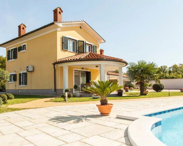 Los espacios exteriores de "Mirela" aprovechan el paisaje istrio y el clima cálido de Croacia. La parcela vallada de 1.800 m2 incluye un jardín bien mantenido con césped que ofrece amplio espacio para relajarse. La piscina privada angular mide 11 x 4 metros, con una superficie total de 48 m2 y una profundidad de 140 cm; dispone de escalera interior para acceso fácil, sistema de contracorriente y chorros de hidromassage. La piscina está disponible del 1 de junio al 14 de septiembre. En la propiedad hay una ducha exterior y una zona de barbacoa para disfrutar de cenas al aire libre.