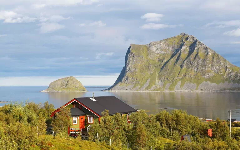 En un ambiente magnífico y tranquilo en las islas Lofoten del oeste, se encuentra esta encantadora cabaña vacacional 12 km al oeste de Leknes. Aquí tiene una vista panorámica a las montañas empinadas, idílicas playas arenosas y el poderoso Mar Nórdico que han formado este paisaje. Cuando el sol de medianoche luce en largas noches de primavera y verano, puede pasarse toda la noche sentado en la terraza disfrutando de esta vista espectacular. La casa se encuentra en una colina rodeada de fáciles rutas de senderismo a lo largo del mar y en las montañas. Desde la cima tienen los mejores miradores hacia Æsholman, un grupo de islas que fue abandonado después de una dramática tormenta. La bonita playa de Haukelandsstranden está justo al lado de la casa y es la playa más popular los días calurosos de verano. El propietario de la casa le puede ayudar con el alquiler de coche. Este lugar es un maravilloso punto de partida para las excursiones de día por las Lofoten. A 12 km de la ciudad de Leknes, donde encontrará tiendas y restaurantes. Visite la ciudad pequeña de Vikten y su centro de sopladores de vidrio. Vea muchos pueblos pesqueros por la orilla sur de Lofoten, rodeada de montañas altas y e irregulares. También visite Kabelvåg en el norte, donde puede tener una experiencia cercana con los peces del acuario. Merece la pena visitar el viejo muelle, la galería y visionados de películas de Lofoten en el viejo pueblo pesquero de Henningsvær. Nota: se requiere alquilar ropa de cama con la reserva de esta casa. 1 salón: 28 m2, estufa a leña, radio, reproductor CD, reproductor DVD, TV 2 dormitorios: (1 Cama Doble+1 Cama)+(1CD+1C) 1 entresuelo: cocina: cocina eléctrica, frigorífico, congelador 1-59 l, microondas, lavadora, embudo de café Baño/WC: WC, lavabo, ducha y: terraza cubierta, calefacción eléctrica, parrilla de jardín, parcela montuosa de 1100 m2, mobiliario precioso, vista al agua, casa para no fumadores.