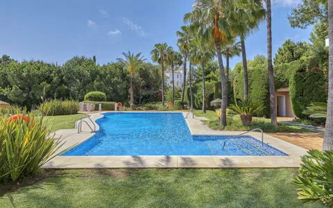 Ubicado en el complejo residencial "Altos de la Quinta", construido en 2005, este apartamento de vacaciones ofrece un refugio refinado en Benahavís, España. La propiedad se sitúa directamente junto a un campo de golf y alejada del bullicio de las zonas turísticas, proporcionando una sensación de privacidad y tranquilidad. El complejo dispone de un jardín compartido con zonas de césped bien mantenidas y acceso a una piscina compartida disponible durante todo el año.