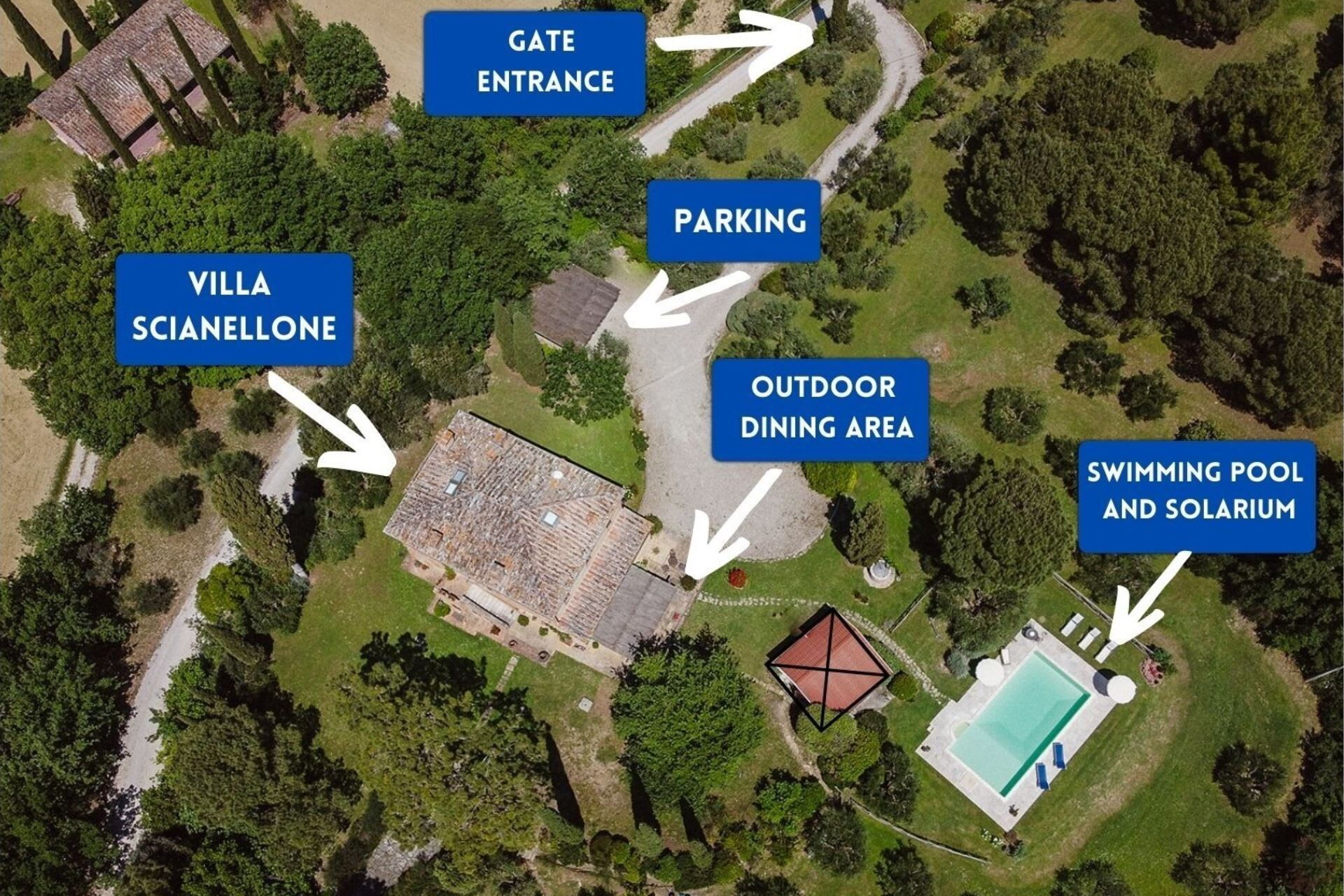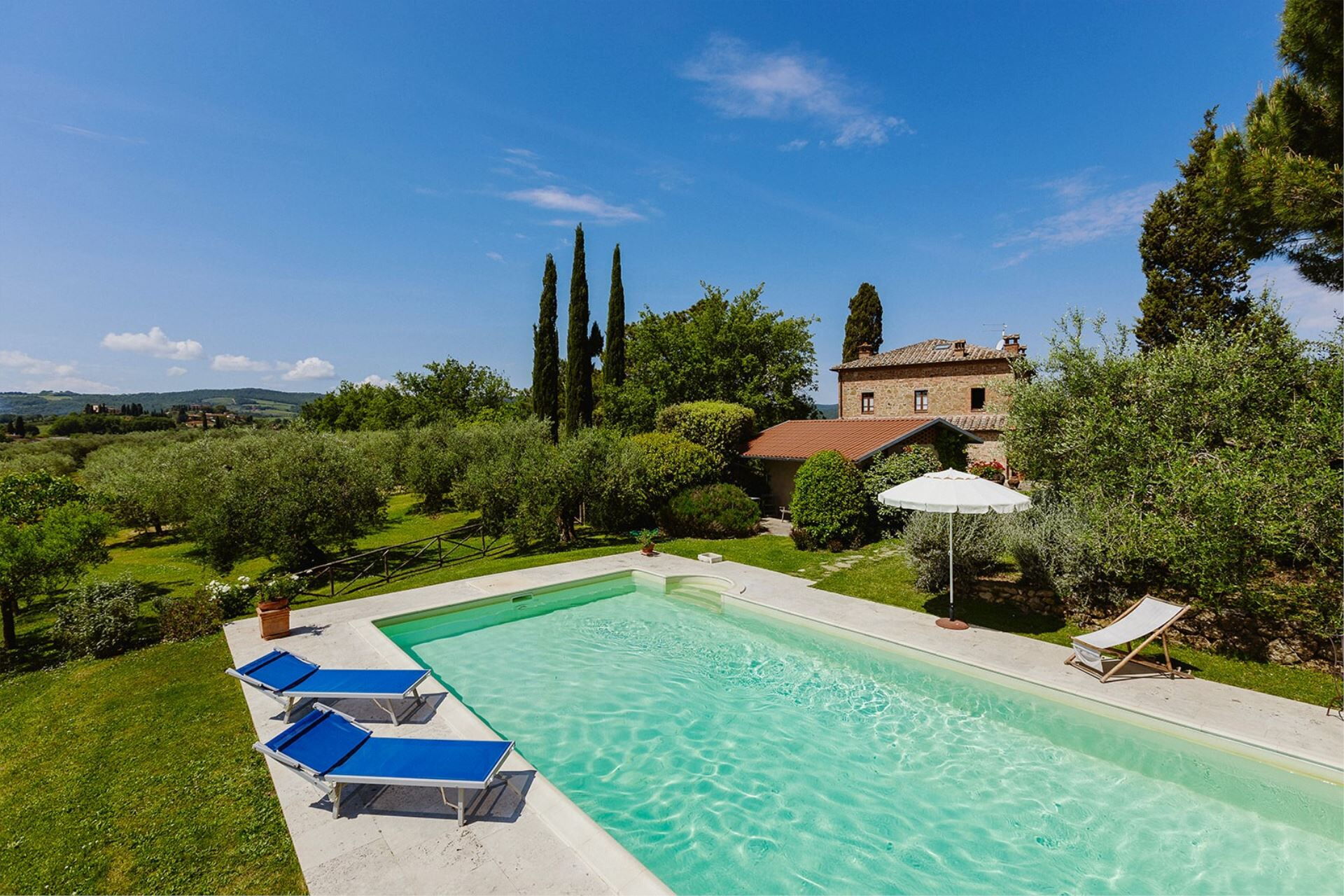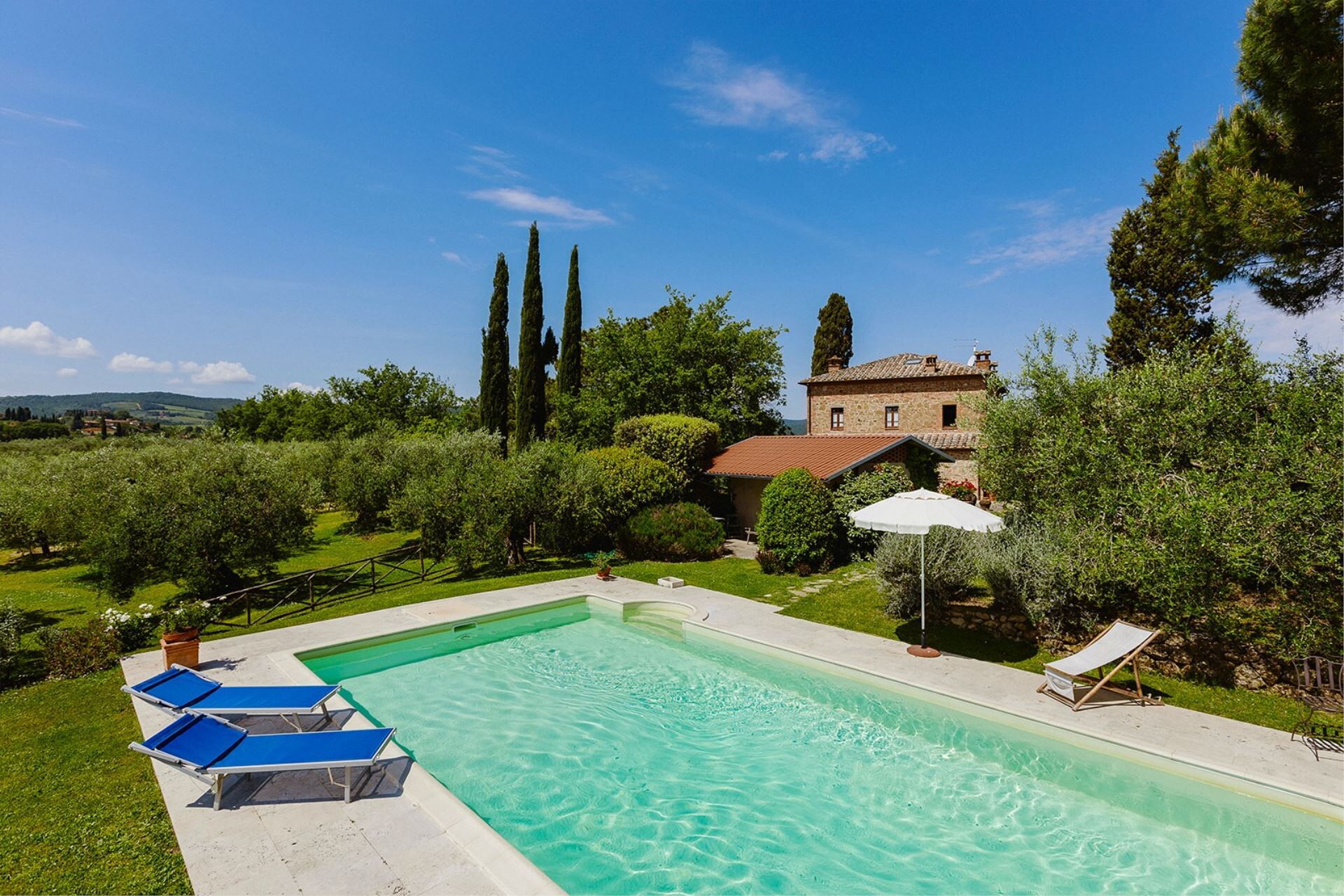Un amplio jardín rodeado de cipreses y otros frondosos árboles, vistas a las colinas y a los exuberantes paisajes de la Toscana, una piscina privada, un tejado de terracota, una bonita cocina tradicional toscana, encantadoras habitaciones decoradas con detalle y esmero, techos altos con vigas vistas, una bonita zona cubierta para comer al aire libre, muchas habitaciones con salida directa a la terraza... todo esto y mucho más es lo que puede esperar de la maravillosa y típicamente toscana Villa La Fragola (que significa Villa de la Fresa) a sólo 500m del pueblo de Chianacce y a 19km (12 millas) de Montepulciano. Situada en una parte del mundo especialmente pintoresca y tranquila, ideal para aquellos que buscan alejarse de todo y relajarse en sus vacaciones, esta joya le permite obtener un verdadero sabor de la vida encantadora y pausada de la Toscana rural, mientras que también está idealmente situada a sólo 5 km de la autopista y permite un fácil acceso a muchos de los destinos y atracciones más famosos de la región. Aquellos que elijan Villa La Fragola, por lo tanto, obtendrán lo mejor de ambos mundos - la escapada de descanso en una campiña toscana de ensueño y un montón de oportunidades para ser un "turista serio" y visitar algunos lugares clave en su lista de cosas que hacer antes de morir. Además de Montepulciano, a sólo 19 km, también se encuentran otras ciudades cercanas como Cortona, a 20 km, Arezzo, a 45 km, Montalcino, a 52 km, y Perugia, a 62 km.