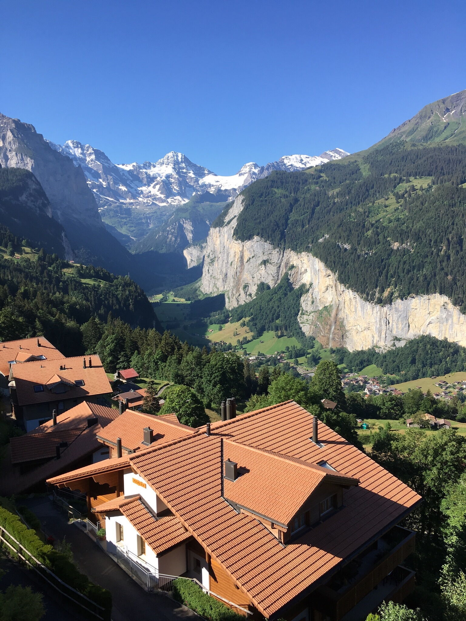 El complejo "Schweizerheim" es un destino de vacaciones sin automóviles; la llegada es exclusivamente posible en tren desde Lauterbrunnen, con un tiempo de viaje de aproximadamente 14 minutos en el ferrocarril de montaña. El alojamiento cuenta con ascensor y sistema de calefacción central. La conexión Wi-Fi está disponible durante la estancia. Un servicio de compra previa de provisiones está disponible, permitiendo tener suministros esenciales listos a la llegada. Se pueden reservar alojamientos adicionales dentro de la propiedad bajo petición.