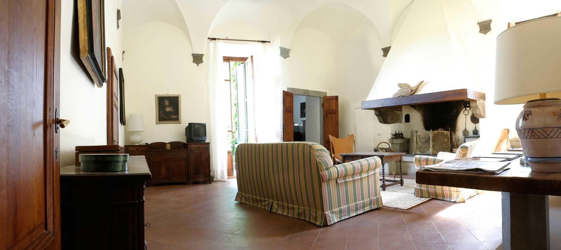 1st floor: living room with large windows overlooking the magnificent formal gardens, kitchen with terrace provided with barbecue for a “al fresco” dining, 1 double (twin) bedroom, 1 bathroom with shower and tub.