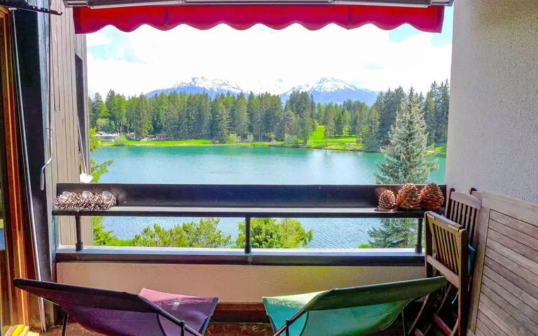 Golf Bellerive 76 es un estudio de 35 m² situado en la primera planta con capacidad para 2 huéspedes máximo. Dispone de 1 dormitorio y 1 baño. El espacio combina la zona de estar y de dormir en una única estancia equipada con una cama doble abatible de 160 cm de ancho y 200 cm de largo. La cocina abierta, integrada en el espacio de estar, dispone de horno, 4 placas de cocción de vitrocerámica, tostadora, hervidor, cafetera eléctrica, parrilla raclette y juego de fondue con chinoise y queso. El baño está equipado con bañera y WC. Un balcón de 5 m² orientado al sur se extiende desde la zona de estar, amueblado con mobiliario de balcón y 2 tumbonas, con vistas al lago, las montañas y el jardín.