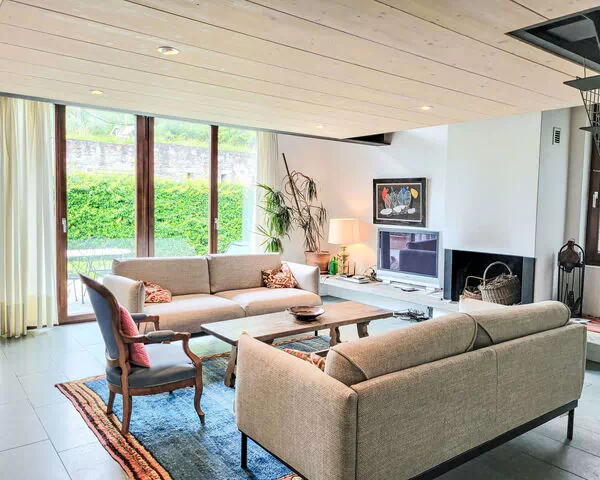 El jardín privado de "Cantagallo" abarca 100 m² y está completamente cercado por una valla, ofreciendo un entorno seguro y sereno donde los huéspedes pueden relajarse en el césped y disfrutar del sol cálido orientado al suroeste. Un camino de escalones de 7 peldaños conduce a la entrada de la casa, añadiendo carácter rústico a la propiedad. El jardín proporciona un espacio acogedor para cenas al aire libre y momentos de ocio en el aire fresco suizo, con el paisaje de viñedos como telón de fondo. Los terrenos son accesibles a través de un camino de acceso motorizado de 20 metros, asegurando facilidad de llegada y salida mientras se preserva la sensación de privacidad.