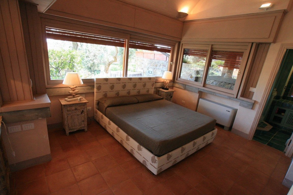 The villa has several terraces around/garden paths with olive trees and flowers. Right side of the garden - the pool (salt water) with Jacuzzi corner . 10 x 4m, depth 1:30 ) The holiday home has 5 bathrooms and 5 bedrooms ( 4 x double , 1 x single bed , the suite has a fireplace ) . The living room is large, bright and cozy with dining table and TV - sitting room , off the living room terrace with dining table. In addition, the large well equipped kitchen with dishwasher, stove and professional espresso machine. In addition, a bedroom. Some stairs deeper is the suite with glass wall and fireplace, bathroom with shower and access to private terrace with dining table and chairs .